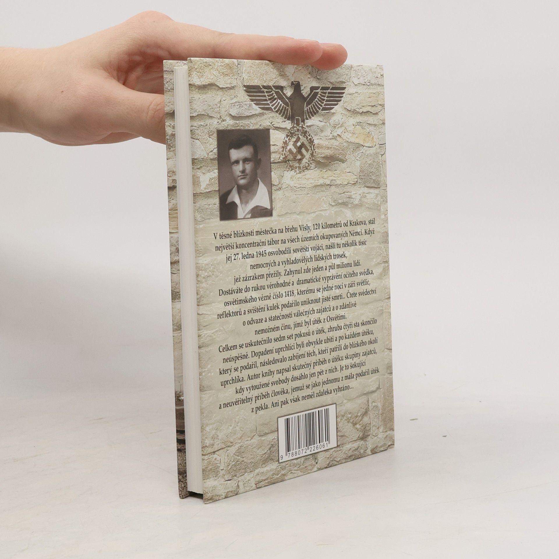 Šokující skutečný příběh člověka, jenž unikl z pekla Osvětimi Věrohodné a dramatické vyprávění očitého svědka, osvětimského vězně číslo 1418, kterému se jedné noci v záři světlic, reflektorů a svištění kulek podařilo uniknout jisté smrti… V těsné blízkosti městečka na břehu Visly, 120 kilometrů od Krakova, stál největší koncentrační tábor na všech územích okupovaných Němci. Když jej 27. ledna 1945 osvobodili sovětští vojáci, našli tu několik tisíc nemocných a vyhladovělých lidských trosek, jež zázrakem přežily. Zahynul zde jeden a půl miliónu lidí. Čtěte svědectví o odvaze a statečnosti válečných zajatců a o zdánlivě nemožném činu, jímž byl útěk z Osvětimi. Celkem se uskutečnilo sedm set pokusů o útěk, zhruba čtyři sta skončilo neúspěšně. Dopadení uprchlíci byli obvykle ubiti a po každém útěku, který se podařil, následovalo zabíjení těch, kteří patřili do blízkého okolí uprchlíka. Autor knihy napsal skutečný příběh o útěku skupiny zajatců, kdy vytoužené svobody dosáhlo jen pět z nich. Je to šokující a neuvěřitelný příběh člověka, jemuž se jako jednomu z mála podařil útěk z pekla. Ani pak však neměl zdaleka vyhráno…