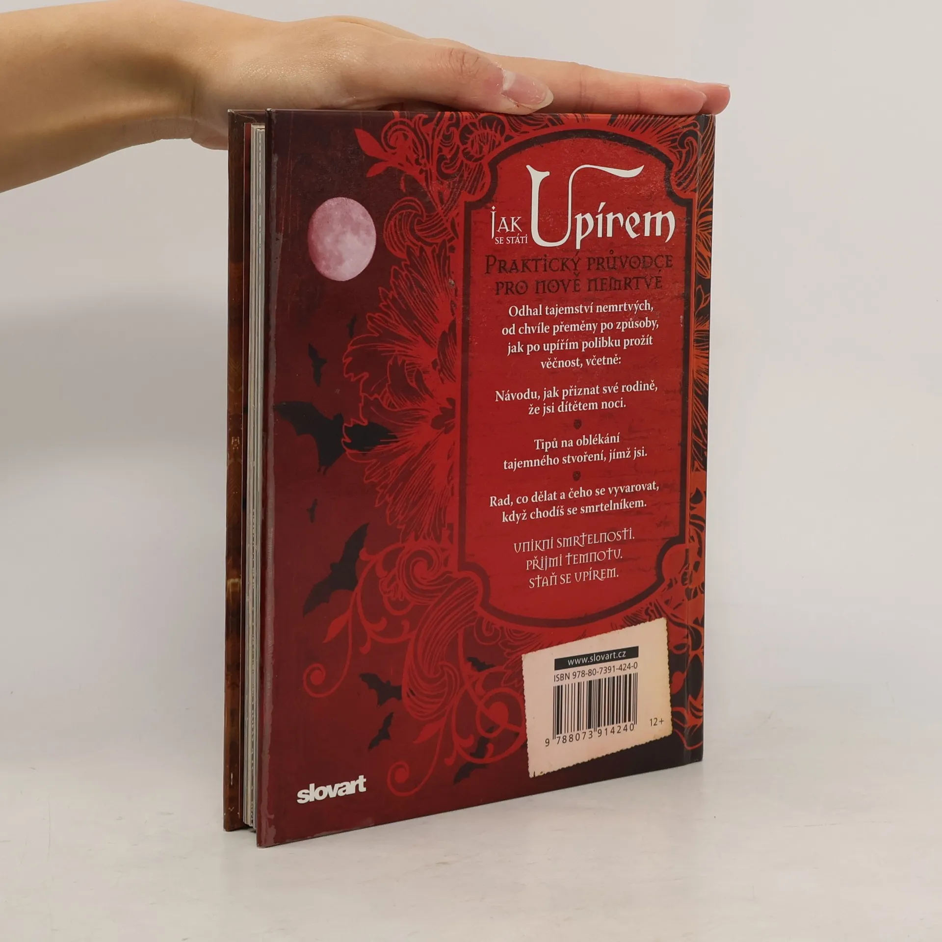 Praktický průvodce pro nově nemrtvé. Svět moci a krásy čeká. Děsivá a neodolatelná říše upírů láká. Odvážíš se uniknout drásavým poutům smrtelnosti? Vyhnout se sluneční záři, která způsobuje stárnutí, a přijmout noc? Osvojit si pláštík božství s mocí, o níž se ti ani nesnilo? Odvrhni plytkou povrchnost dnešní pomíjivé nudy - trvalé umělé opálení, lesk a pozlátko. Pohrdni každodenností a obyčejnou existencí - staň se upírem! Upíři, osamocení bohové noci, jsou povzneseni nad obyčejnou všednost svých slabých lidských bratranců. Osvobozeni od pout zvyklostí okoušejí tabu a zkoumají temnotu. Upíři jsou zdokonaleným lidstvem. Ztělesňují všechny lidské touhy: krásu, mazanost, mládí, sílu a pružné, svůdné pokušení ve všem, co dělají. Přijmi temnotu jako všichni upíři. Navzdory tichému tepu se v každém upírovi ukrývá pravá vášeň pro život - každonoční oslava jejich zostřených smyslů a bezvadné krásy. Lidé si myslí, že o upírech vědí všechno. Ale nekoupali se osvíceni měsícem, jako to budeš dělat ty. Budeš znát pravdu. Vykroč na cestu temnoty. A za odměnu získej úžasnou nesmrtelnost.