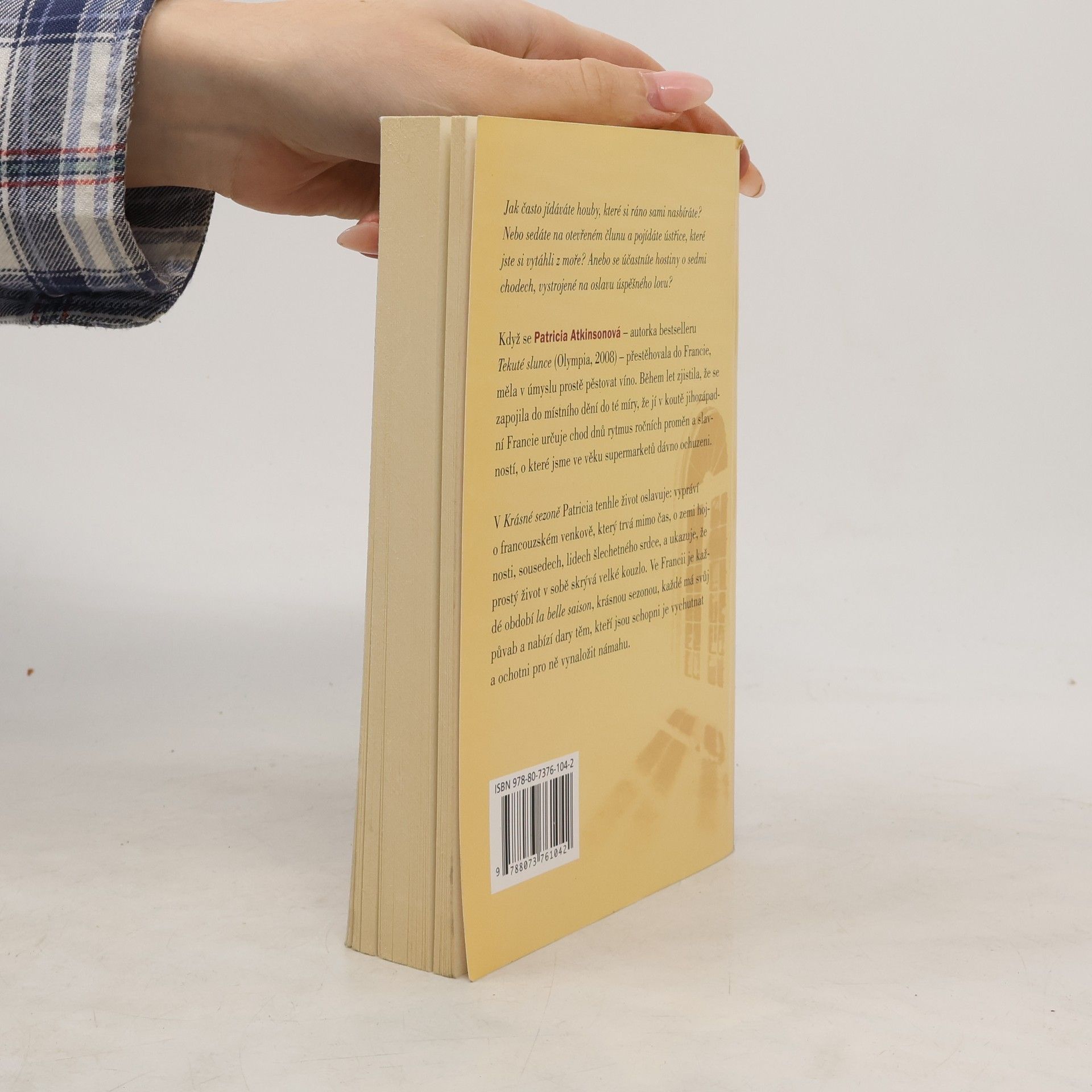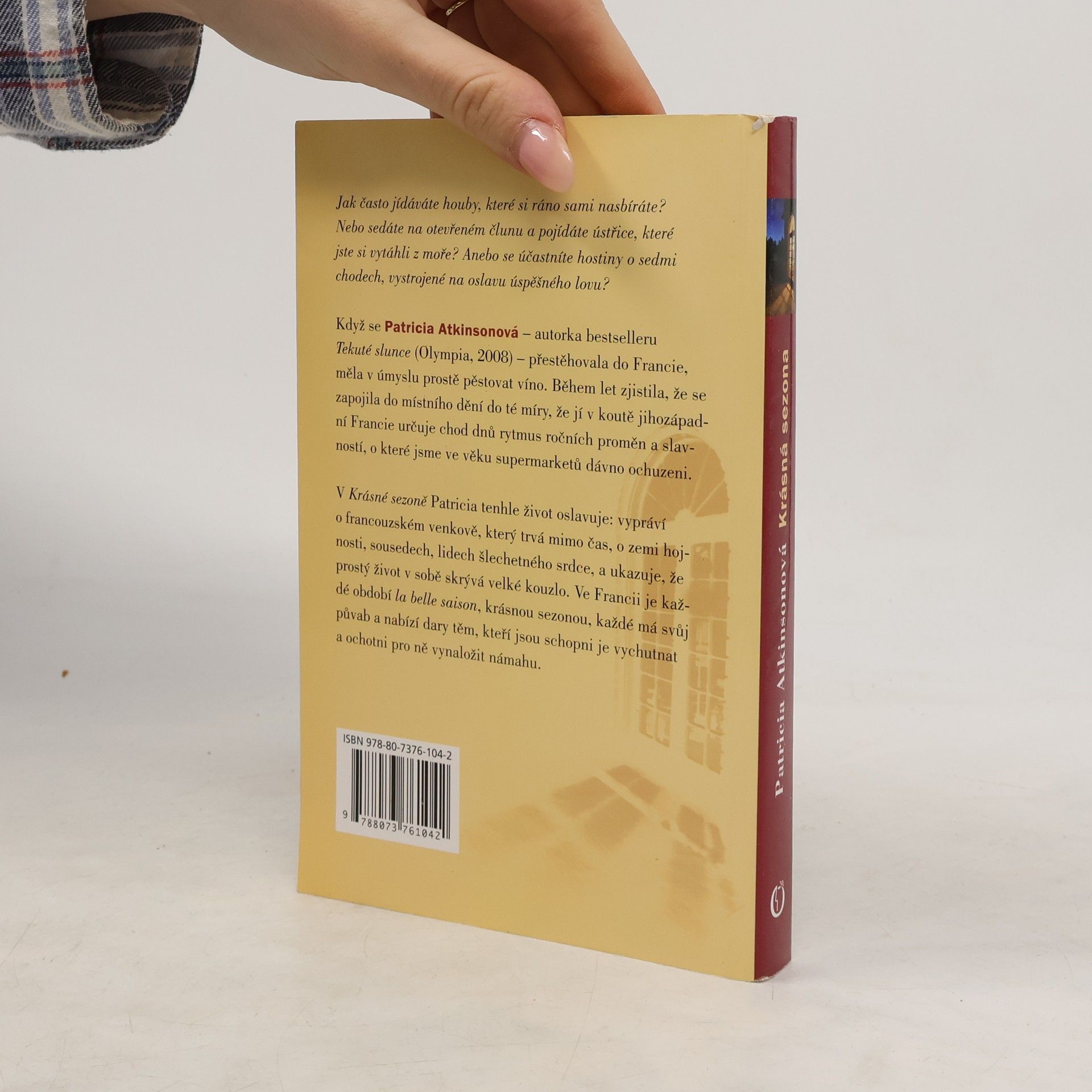 Když se Patricia Atkinsonová stěhovala z Anglie do Francie, toužila po klidném životě na venkovské farmě. Ale osud tomu chtěl jinak (viz kniha Tekuté slunce, Olympia 2008). Zůstala ve Francii sama a snažila se obnovit a zúrodnit zanedbanou vinici. Během let se vžívala do způsobu života, o kterém do té doby neměla ani tušení. Její každodenní existence v jihozápadním koutku Francie, založená na rytmu střídání ročních období, je diktována řadou rituálů a oslav, které jsme v éře supermarketů a pracovního shonu dávno poztráceli. Krásná sezona je oslavou ztraceného způsobu života: svědectví o bezmeznosti krásného francouzského života, o štědrosti půdy i šlechetnosti sousedů, kteří Patricii ukázali, že prostý život přináší mnohé sladké odměny. Ve Francii je každá sezona "krásná" a nabízí své dary těm, kteří jsou ochotni ocenit půdu a starat se o ni