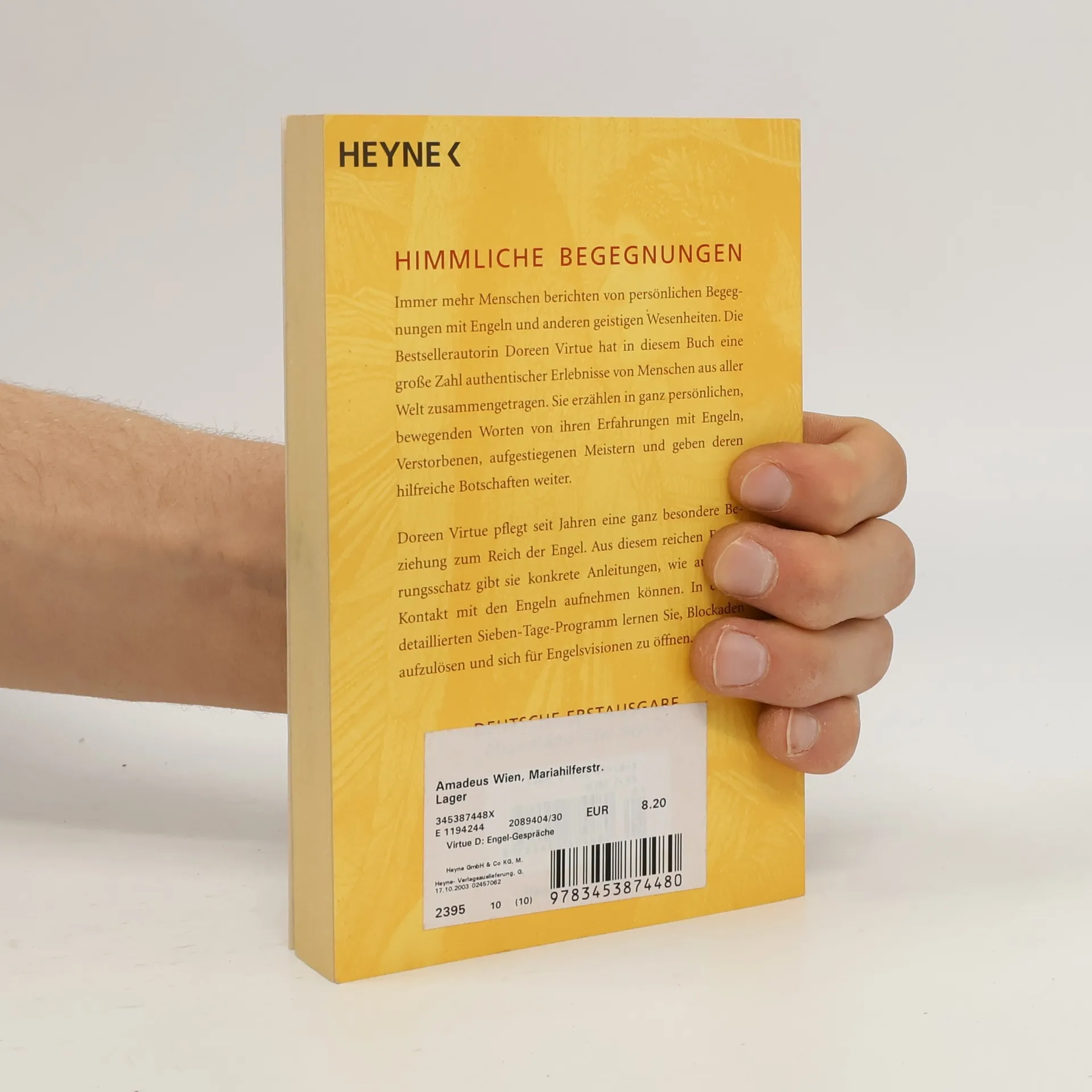 Himmlische Begegnungen Immer mehr Menschen berichten von persönlichen Begegnungen mit Engeln und anderen geistigen Wesenheiten. Die Bestsellerautorin Doreen Virtue hat in diesem Buch eine große Zahl authentischer Erlebnisse von Menschen aus aller Welt zusammengetragen. Sie erzählen in ganz persönlichen, bewegenden Worten von ihren Erfahrungen mit Engeln, Verstorbenen, aufgestiegenen Meistern und geben deren hilfreiche Botschaften weiter. Doreen Virtue pflegt seit Jahren eine ganz besondere Beziehung zum Reich der Engel. Aus diesem reichen Erfahrungsschatz gibt sie konkrete Anleitungen, wie auch Sie Kontakt mit den Engeln ausnehmen können. In einem detaillierten Sieben-Tage-Programm lernen Sie, Blockaden aufzulösen und sich für Engelsvisionen zu öffnen.