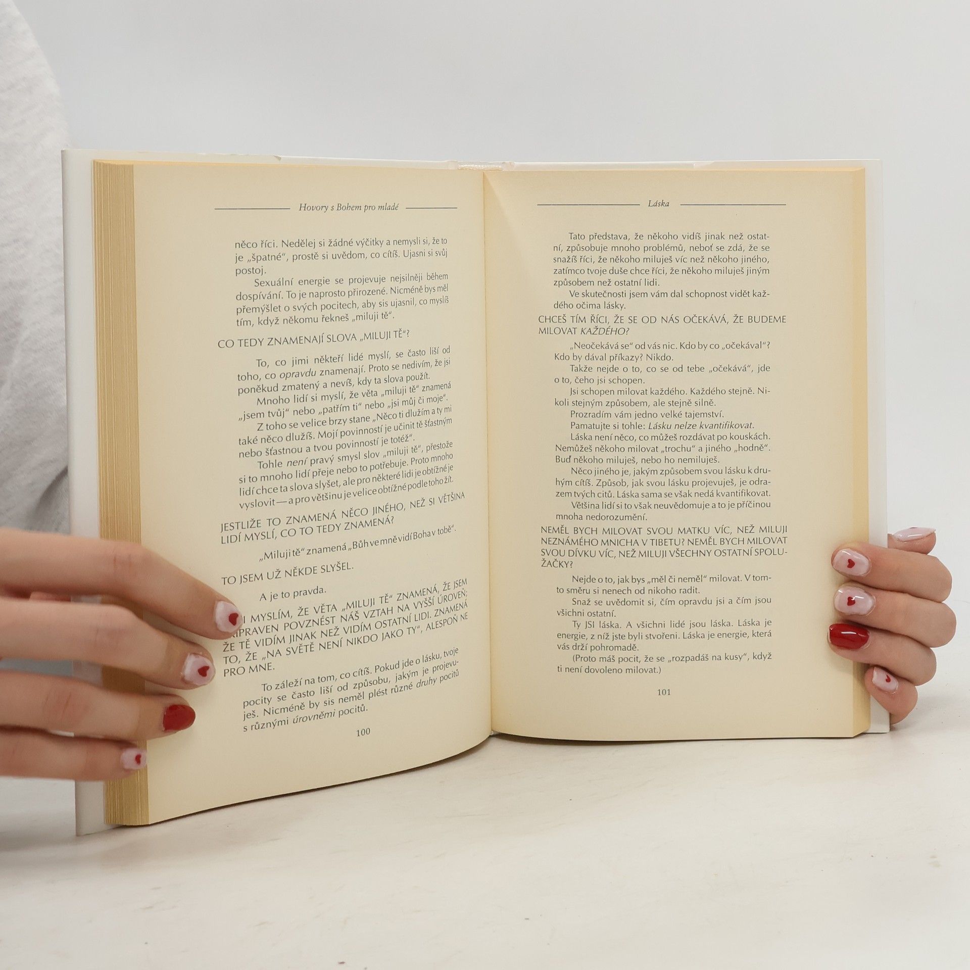 Představte si, že byste mohli dát Bohu jakoukoli otázku a on by vám odpověděl. Na co byste se zeptali? Mladí lidé na celém světě kladou zajímavé otázky. Proto Neale Donald Walsch, jehož život se změnil v důsledku jeho rozhovorů s Bohem, měl další rozhovor. Je to velmi prostý a srozumitelný rozhovor. Odpovědi v této knize mohou změnit vaše názory na Boha, peníze, sex, lásku a na všechno, co vás ve škole učili. Jestliže vás zajímá, zda vám Bůh naslouchá, zda vám Bůh může opravdu pomoci, zda vás Bůh miluje a zda Bůh vůbec existuje, pak je tato kniha pro vás. Neboť zjistíte, že vlastně nejde o autorův rozhovor s Bohem. Důležitý je váš vlastní rozhovor. A nejlepší čas začít, je právě teď. Neale Donald Walsch je autorem knih Hovory s Bohem, Přátelství s Bohem a Přijímání Boha; všechny tyto knihy se staly bestsellery. První kniha Hovorů s Bohem byla na seznamu bestsellerů půl druhého roku. Knihy byly přeloženy do sedmadvaceti jazyků a bylo jich prodáno mnoho milionů. Walsch pořádá přednášky a duchovní semináře, které rozšiřují poselství obsažené v jeho neobyčejných knihách. Jeho nejnovější práce zahrnuje semináře pro mládež na celém světě a tuto knihu.