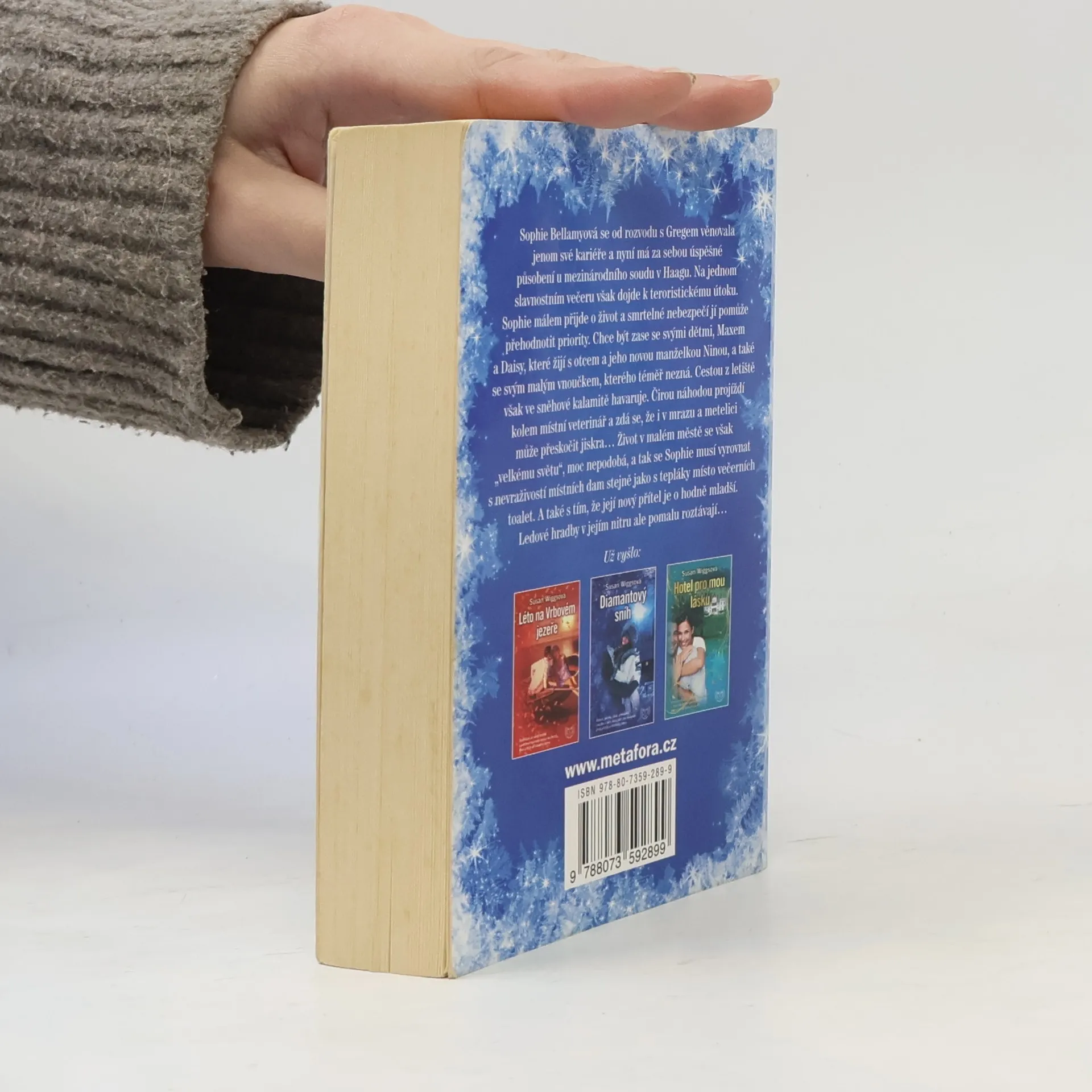 Čtvrtý příběh od Vrbového jezera. I v té nejmrazivější vánici může dvě srdce zahřát láska... Sophie Bellamyová se od rozbodu věnovala jenom své kariéře u mezinárodního soudu v Haagu. Na jednom slavnostním večeru však dojde k teroristickému útoku. Sophie málem přijde o život a smrtelné nebezpečí jí pomůže přehodnotit priority. Chce být zase se svými dětmi a také se svým vnoučkem, kterého téměř nezná. Cestou z letiště ve sněhové kalamitě havaruje. Naštěstí projíždí kolem místní veterinář a zdá se, že i ve sněhové vánici může přeskočit jiskra... Život v malém městě má svá úskalí, a tak Sophie musí vyrovnat s nevraživostí místních dam stejně jako s tepláky místo večerních toalet. A také s tím, že její nový přítel je o hodně mladší. Ledové hradby v jejím nitru ale pomalu roztávají...
