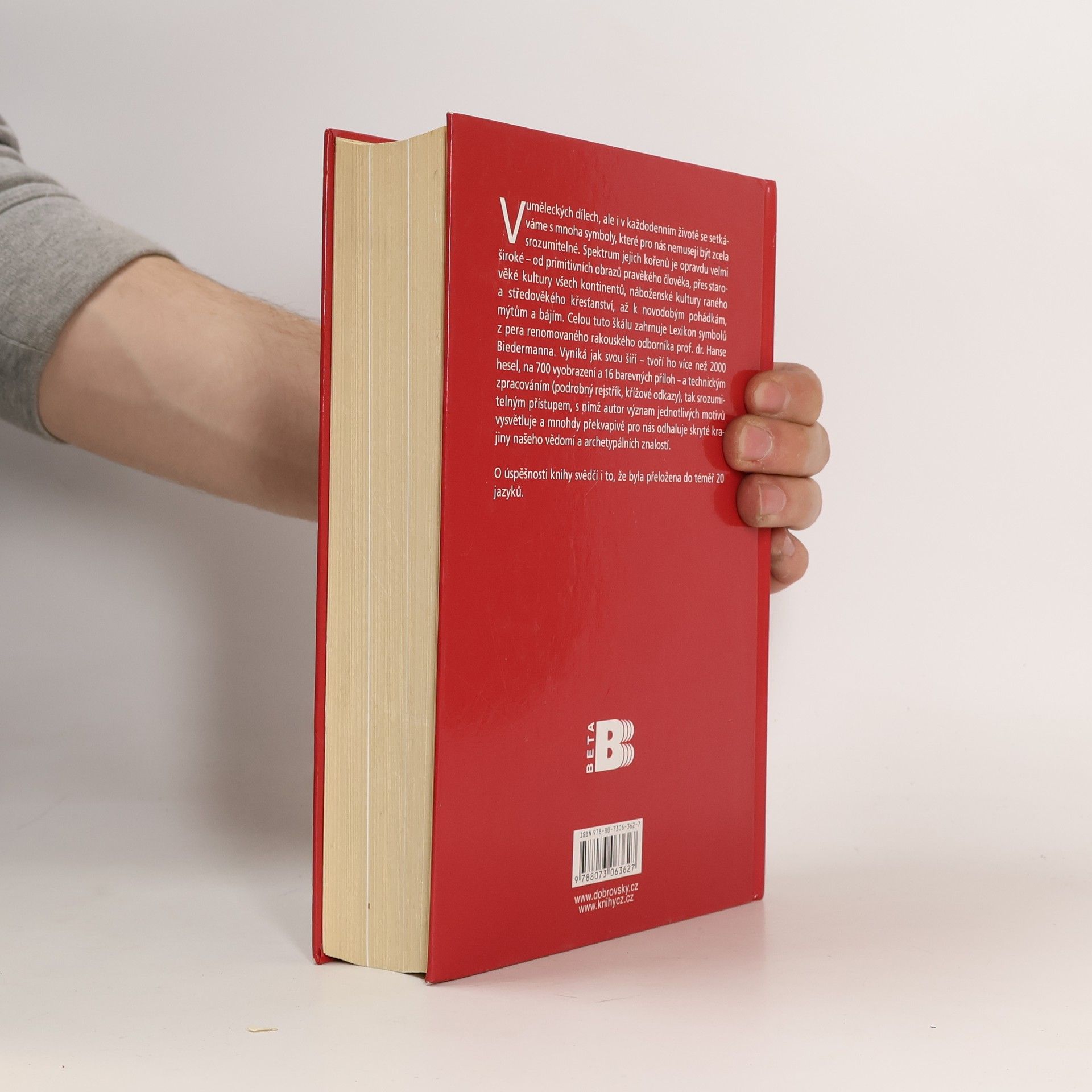 V uměleckých dílech, ale i v každodenním životě se setkáváme s mnoha symboly, které pro nás němusejí být zcela srozumitelné. Spektrum jejich kořenů je opravdu velmi široké – od primitivních obrazů pravěkého člověka, přes starověké kultury všech kontinentů, náboženské kultury raného a středověkého křest'anství, až k novodobým pohádkám, mýtům a bájím. Celou tuto škálu zahrnuje Lexikon symbolů z pera renomovaného rakouského odborníka prof. Hanse Biedermanna. Vyniká jak svou šíří – tvoří ho více než 2000 hesel, na 700 vyobrazení a 16 barevných příloh – a technickým zpracováním (podrobný rejstřík, křížové odkazy), tak srozumitelným přístupem, s nímž autor význam jednotlivých motivů vysvětluje a mnohdy překvapivě pro nás odhaluje skryté krajiny našeho vědomí a archetypálních znalostí. O úspěšnosti knihy svědčí i to, že byla přeložena do téměř 20 jazyků.