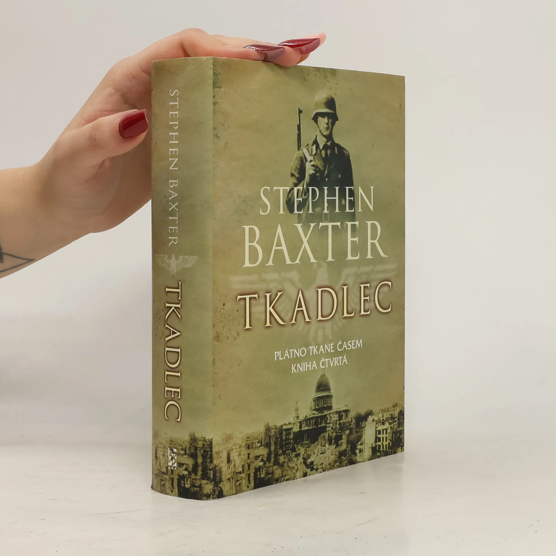 Plátno tkané časem. Kniha čtvrtá. Luftwaffe nemilosrdně ničí RAF a k plážím Sussexu i Kentu dorazily německé invazní čluny. Británie se probouzí do hrůzné reality – jih Anglie obsazuje wermacht. Na ostrově zuří zoufalá bitva, která má zastavit německé invazní jednotky. Několik jedinců se v nastalé panice a chaosu snaží zjistit, co se vlastně stalo – je to vyvrcholení nějakého plánu, který se chystal celá staletí, nějakého záhadného spiknutí, jež má navždy změnit historii? Stephen Baxter nás v románu Tkadlec, posledním dílu své tetralogie, zavádí do Británie za druhé světové války. Něco je ale jinak, než mělo být. Němci se vyloďují v Anglii a Britské ostrovy zažívají téměř devět set let po Vilému Dobyvateli další invazi. Tkadlec už není historickým románem, ale kontrafaktuální historií, je to příběh o tom, co se mohlo stát, kdyby…