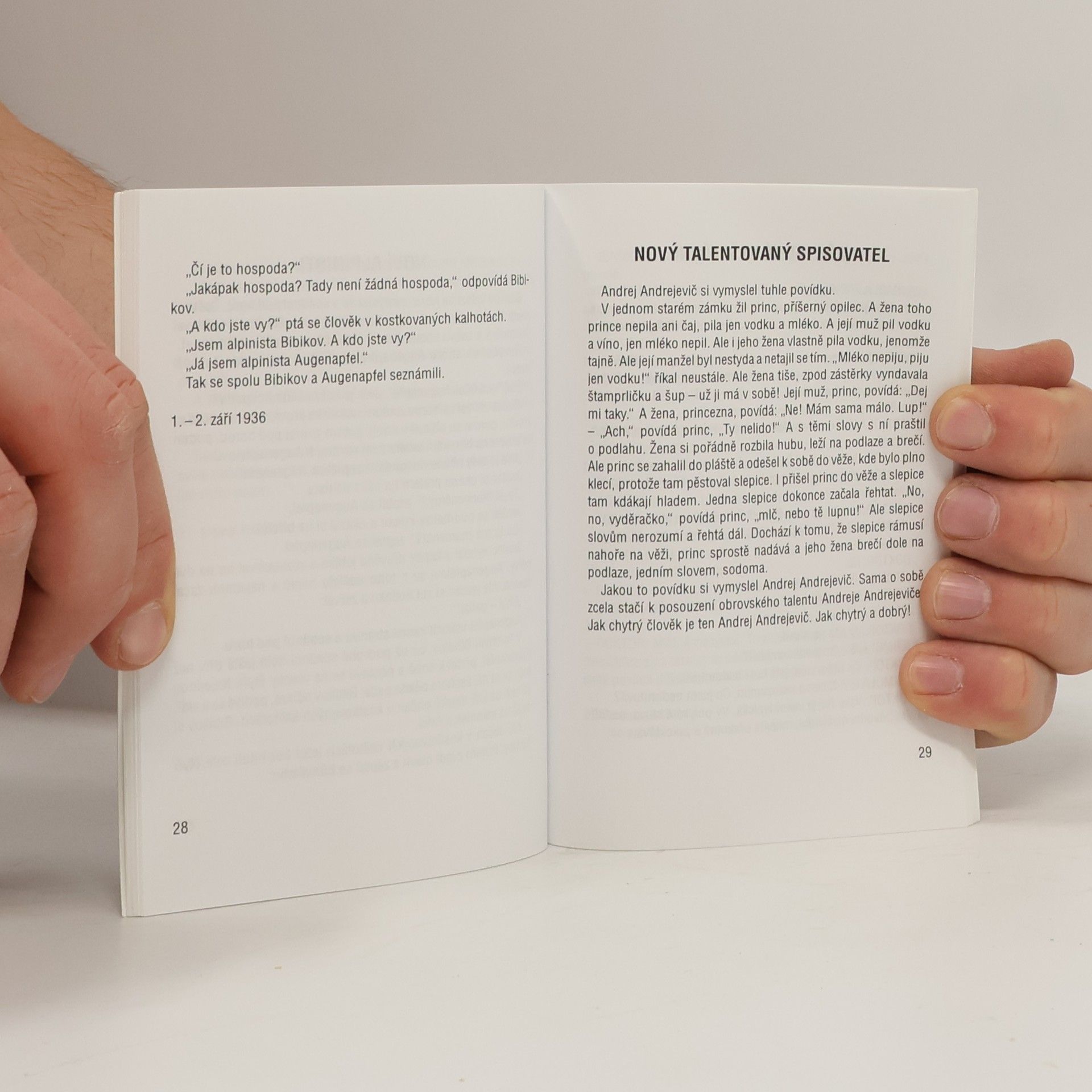 Krátké texty, jejichž charakteristickým rysem je absurdita a nonsens, sugestivně evokují atmosféru totalitního režimu v Rusku 30. let 20. století. Zdánlivě nesmyslné texty svou chmurnou katastrofičností navozují ve čtenáři intenzívní pocit nesvobody a násilí. Knížka bude zajímavá především pro úzký okruh intelektuálně zaměřených čtenářů, přesto by tento originální autor měl být zastoupen alespoň v největších knihovnách