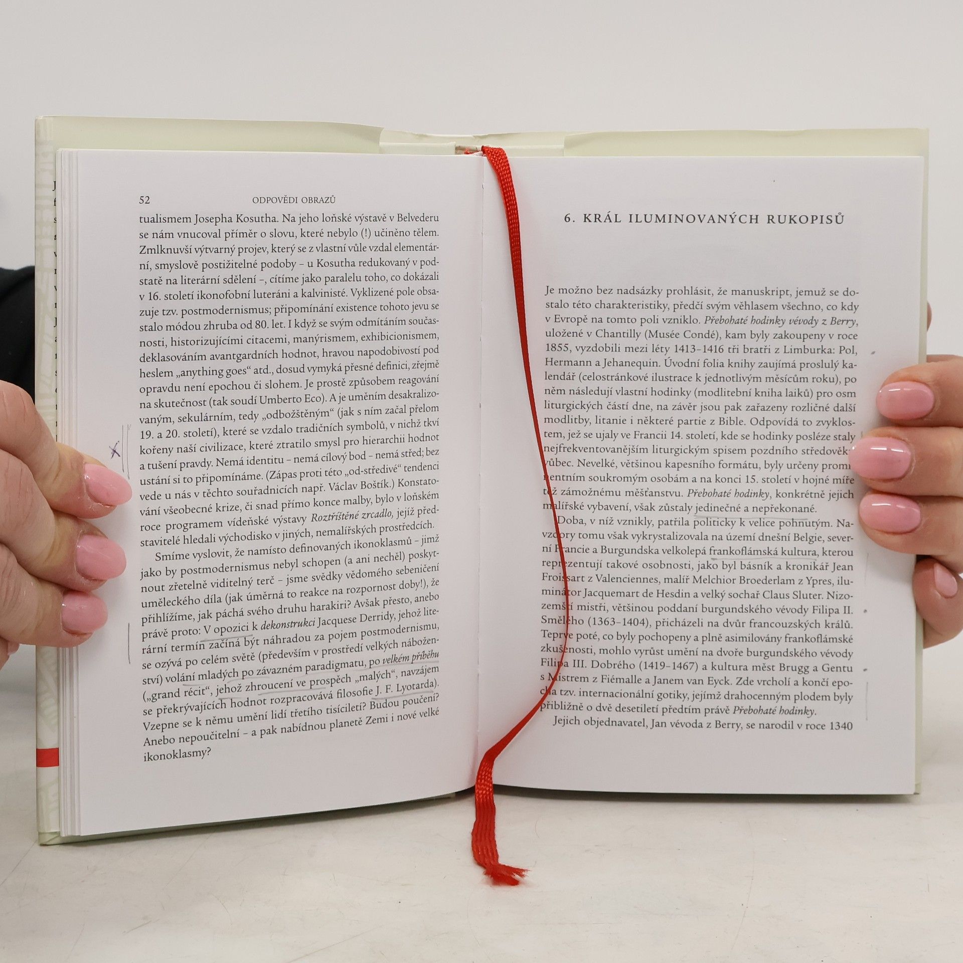 Podtitul: Mistři starého Nizozemí Soubor esejů a úvah o výtvarné tvorbě nejen nizozemského malířství 15. a 16. století, které autorka publikovala v posledním desetiletí v Literárních novinách. Autorka se pohybuje v silovém poli staré nizozemské malby. Eseje obsahují výpovědi o umělcích, metafory obrazů a odhalují skryté moralistní obsahy jednotlivých děl. Prolínají se umělecké analýzy a polemiky s úvahami na kulturní, politické i jiné téma, postřehy, dojmy z četby a komentáře k různým událostem a výstavám v uplynulé době (1989–2000).