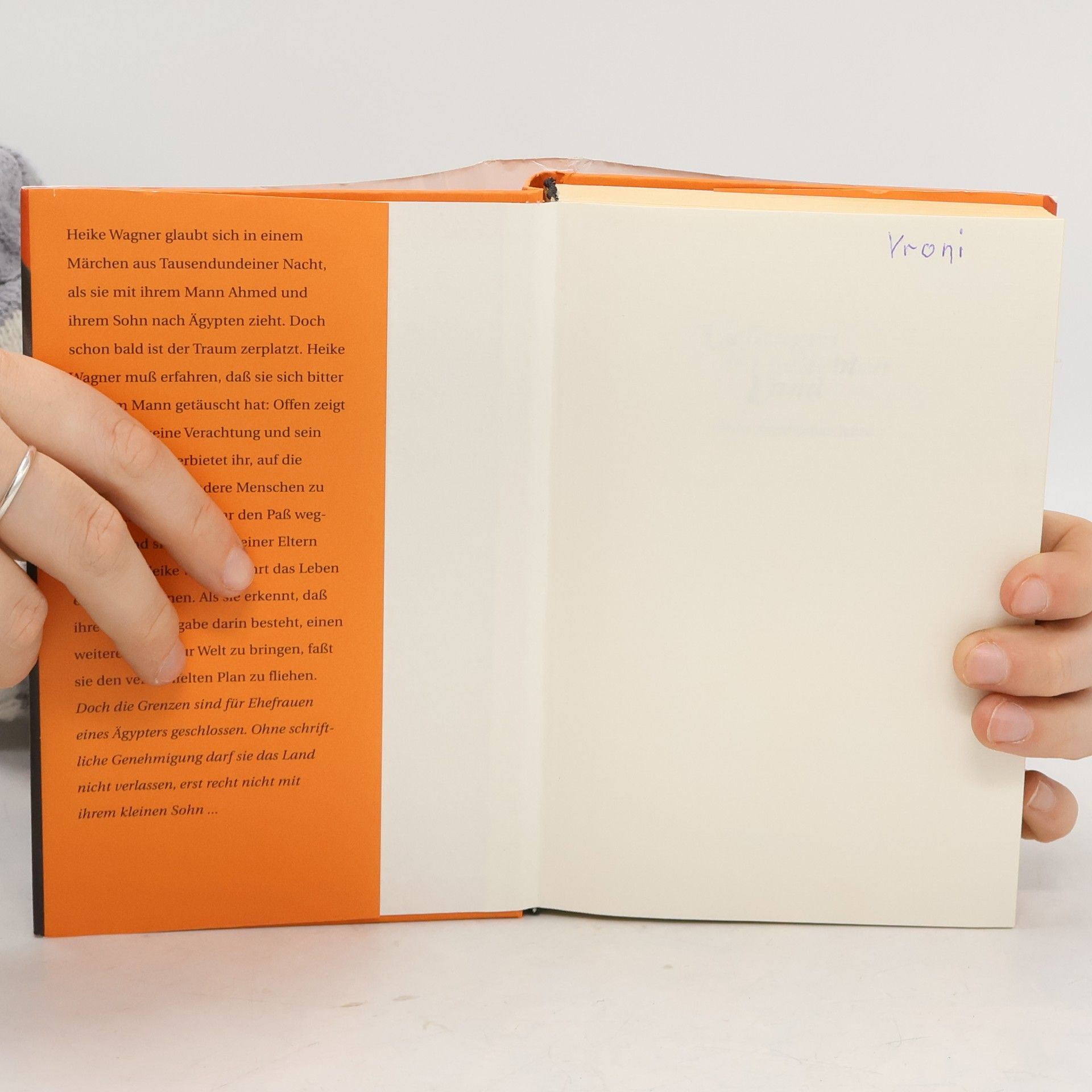 Als junge Frau folgt die Autorin ihrem Mann in dessen Heimat Ägypten. Vor dem Hintergrund des ihr unbekannten Kulturkreises wird ihre Ehe unerträglichen Belastungen ausgesetzt