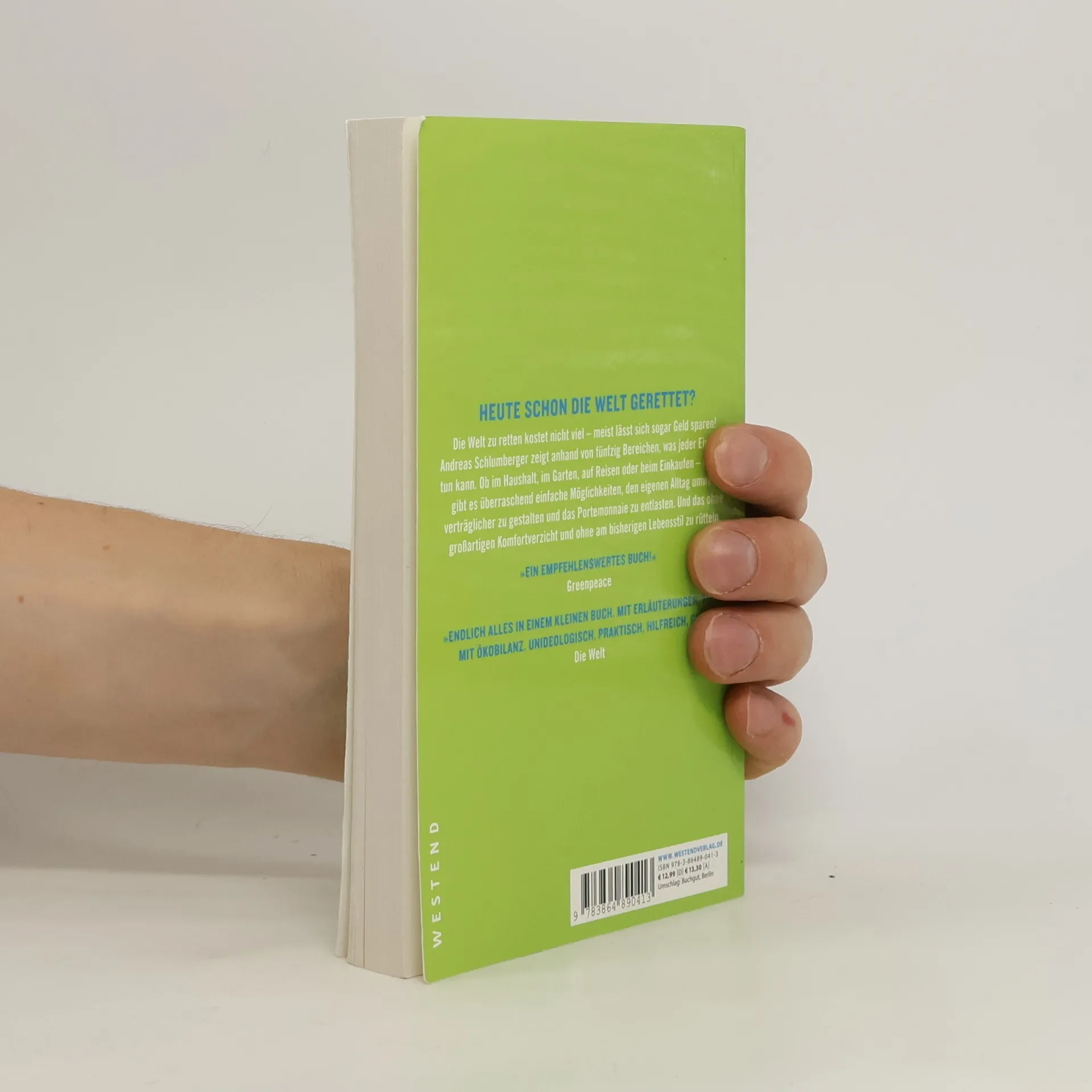 „Es ist schon ein gewaltiger Anspruch, mit dem der Titel dieses Buches konfrontiert. Aber ein Blick auf die teilweise verblüffend einfachen und allesamt sinnvollen Tipps zeigt, wie es gemeint ist und dass es gehen kann. Weil alle diese Vorschläge dazu taugen, den Verbrauchern das Gefühl der eigenen Ohnmacht im Angesicht der gravierenden Umweltprobleme zu nehmen; weil sie zeigen, welchen konkreten Beitrag jeder Einzelne für Klimaschutz, Ressourcenschonung und Abfallvermeidung in den Bereichen Haus und Garten, Ernährung, Mobilität und Freizeit leisten kann. Dieses Buch hat aber noch eine zweite Botschaft: Dass sich mit einem derart vernünftigen Verhalten sogar Geld sparen lässt.“ Aus dem Vorwort von Ernst Ulrich von Weizsäcker