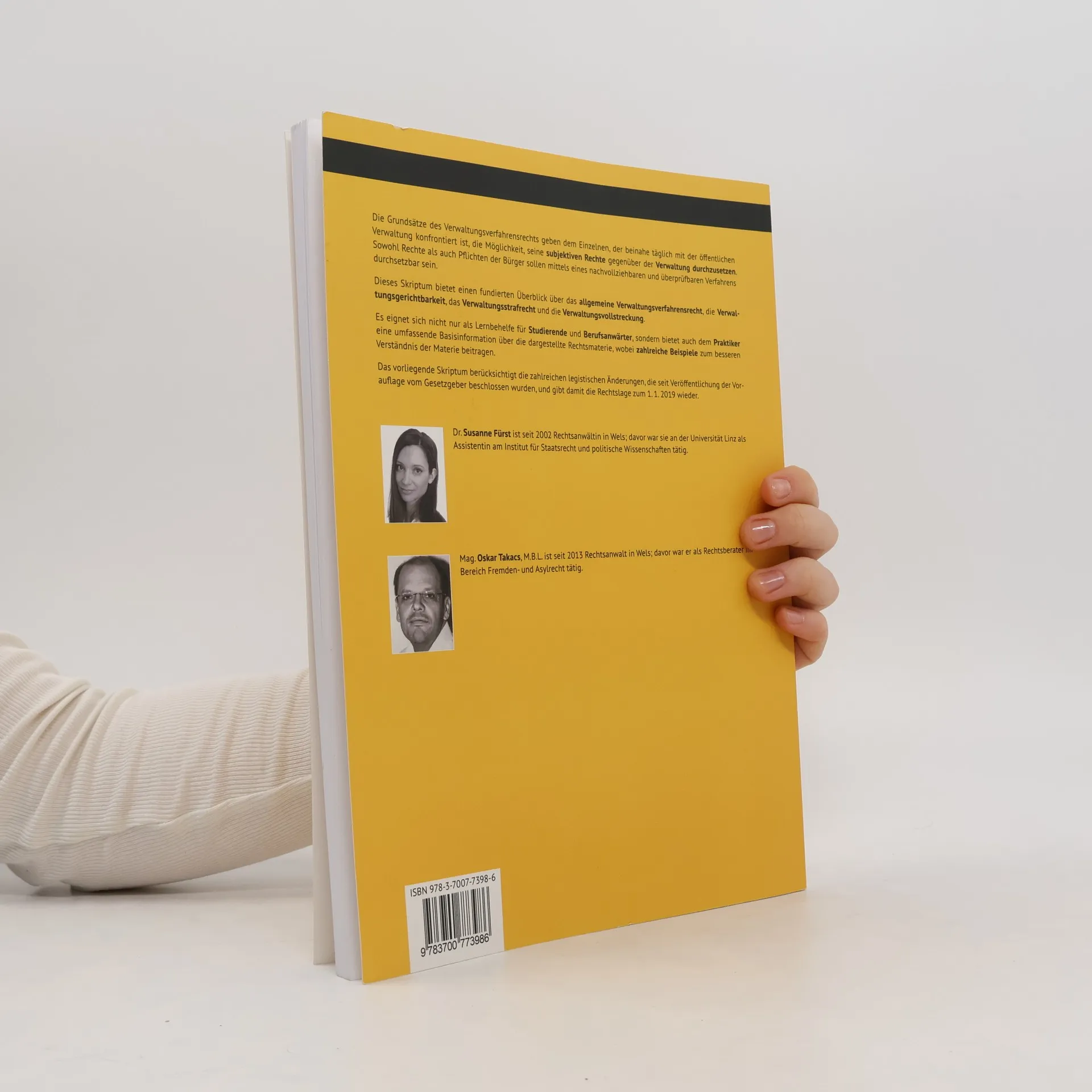 Die Grundsätze des Verwaltungsverfahrensrechts geben dem Einzelnen, der beinahe täglich mit der öffentlichen Verwaltung konfrontiert ist, die Möglichkeit, seine subjektiven Rechte gegenüber der Verwaltung durchzusetzen . Sowohl Rechte als auch Pflichten der Bürger sollen mittels eines nachvollziehbaren und überprüfbaren Verfahrens durchsetzbar sein. Dieses Skriptum bietet einen fundierten Überblick über das allgemeine Verwaltungsverfahrensrecht , die Verwaltungsgerichtbarkeit , das Verwaltungsstrafrecht und die Verwaltungsvollstreckung . Es eignet sich nicht nur als Lernbehelfe für Studierende und Berufsanwärter , sondern bietet auch dem Praktiker eine umfassende Basisinformation über die dargestellte Rechtsmaterie, wobei zahlreiche Beispiele zum besseren Verständnis der Materie beitragen. Das vorliegende Skriptum berücksichtigt die zahlreichen legistischen Änderungen, die seit Veröffentlichung der Vorauflage vom Gesetzgeber beschlossen wurden, und gibt damit die Rechtslage zum 1. 1. 2019 wieder.