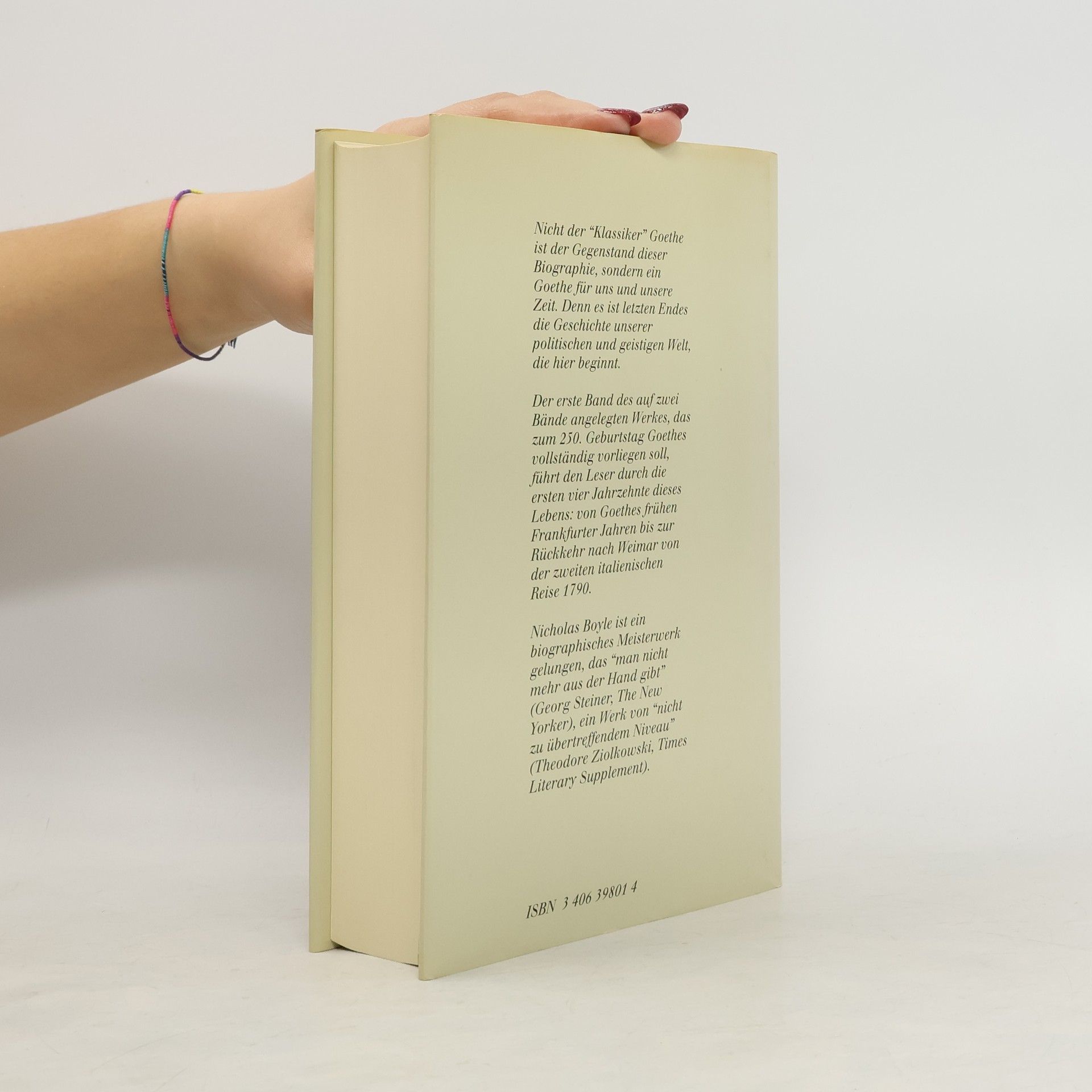 Die besondere Leistung dieser Biographie liegt darin, daß Goethes soziale und geistige Umwelt als Voraussetzung für seine literarische Tätigkeit erschlossen wird. Der Kunst Nicholas Boyles gelingt es, die persönliche und literarische Entwicklung Goethes vor diesem Hintergrund zu erschließen, dem Leser die Augen für verborgene Aspekte seines Lebens und für unbekannte Zusammenhänge zu öffnen.