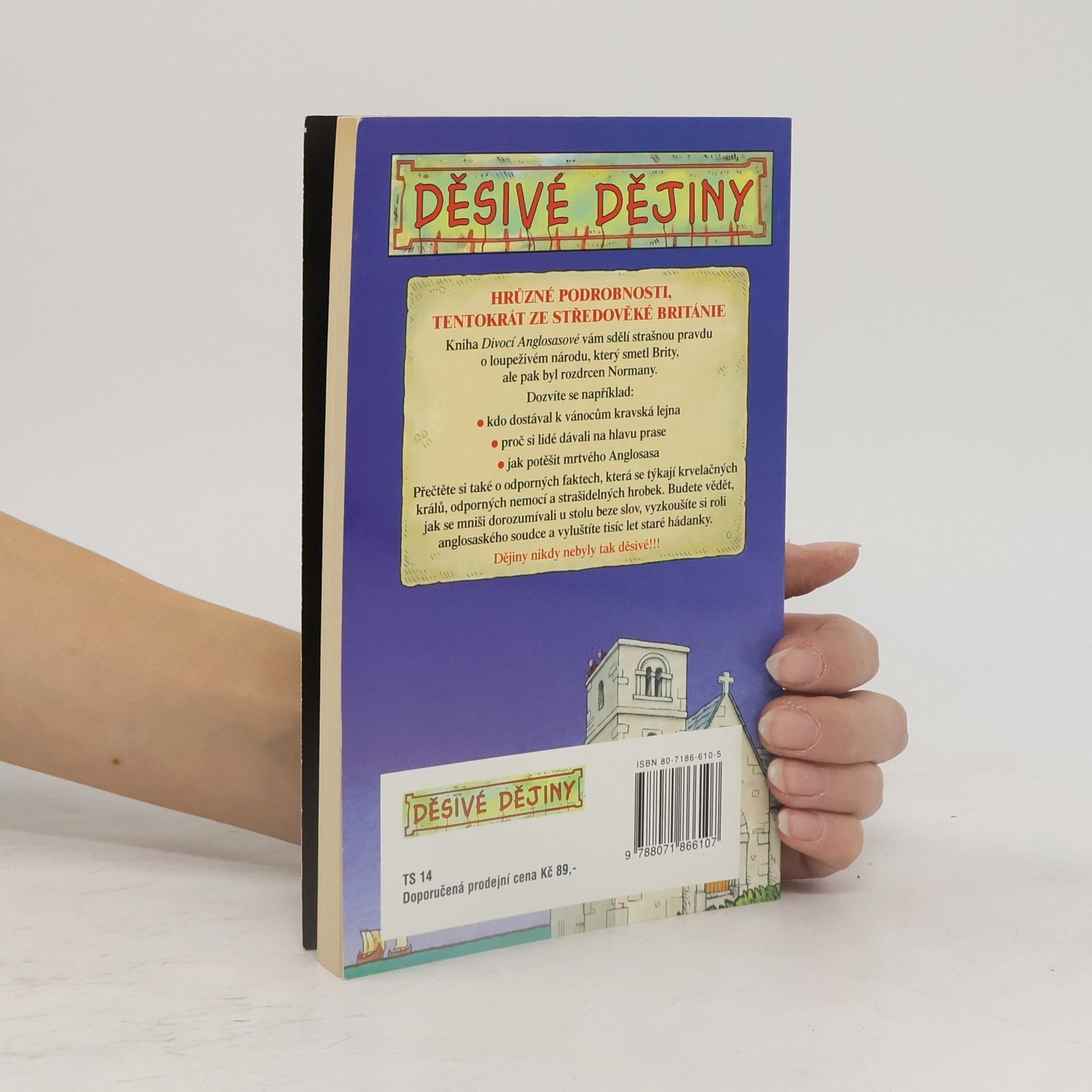Hrůzné podrobnosti, tentokrát ze středověké Británie. Kniha Divocí Anglosasové vám sdělí strašnou pravdu o loupeživém národu, který smetl Brity, ale pak byl rozdrcen Normany. Dozvíte se například: . kdo dostával k vánocům kravská lejna . proč si lidé dávali na hlavu prase . jak potěšit mrtvého Anglosasa Přečtěte si také o odporných faktech, která se týkají krvelačných králů, odporných nemocí a strašidelných hrobek. Budete vědět, jak se mniši dorozumívali u stolu beze slov, vyzkoušíte si roli anglosaského soudce a vyluštíte tisíc let staré hádanky. Dějiny nikdy nebyly tak děsivé!