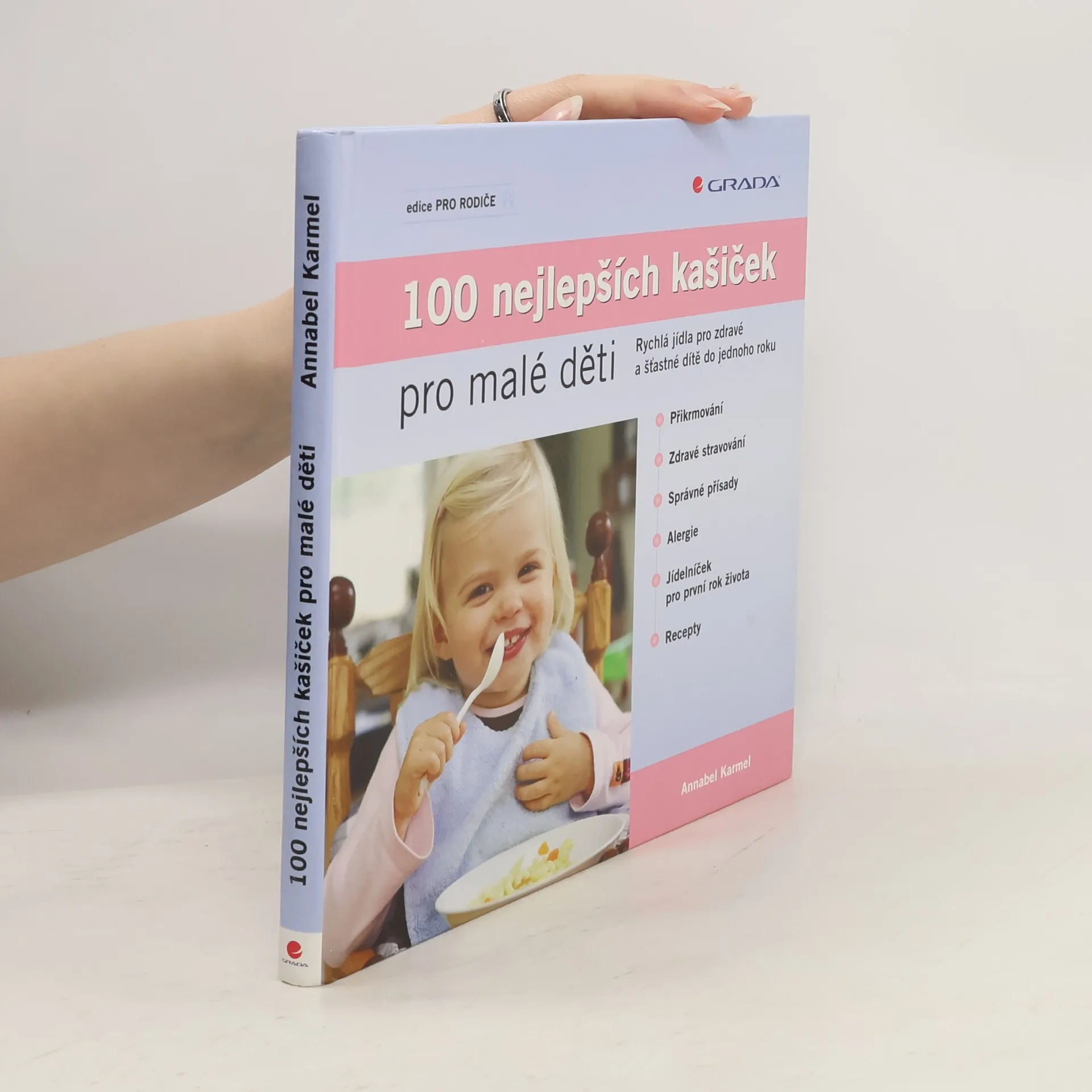 Podtitul: Rychlá jídla pro zdravé a šťastné dítě do jednoho roku Kašičková kuchařka pro kojence a batolata. Nápadité, rychlé a zdravé recepty pro ty nejmenší aneb jídelníček pro první rok života. Publikace obsahuje 100 receptů na domácí pyré a jiné "vtipné kaše" rozdělené do 3 cyklů podle věku, postupného rozvoje chuti a potřeb zdravého růstu vašeho dítěte.