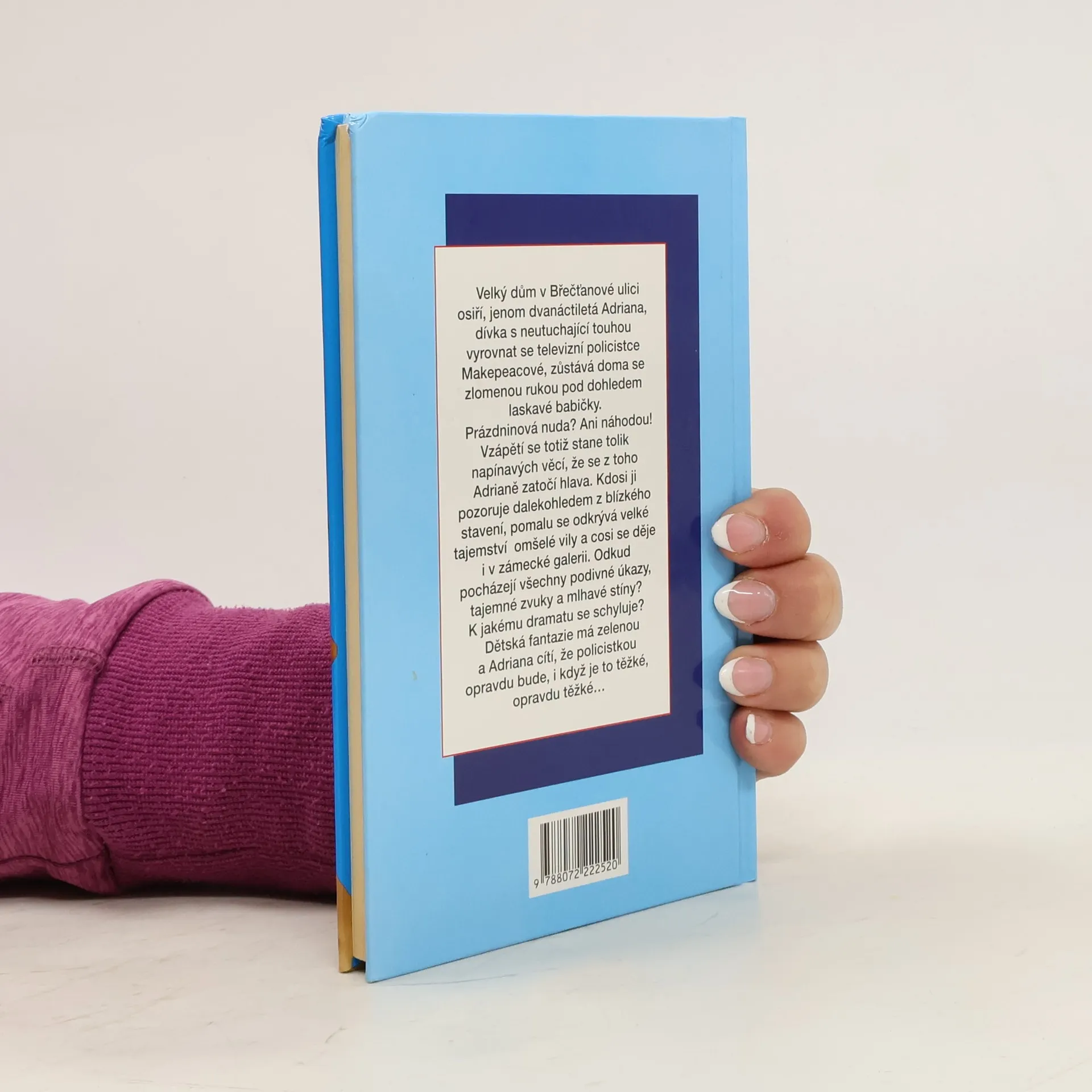 Velký dům v Břečťanové ulici osiří, jenom dvanáctiletá Adriana, dívka s neutuchající touhou vyrovnat se televizní policistce Makepeacové, zůstává doma se zlomenou rukou pod dohledem laskavé babičky. Prázdninová nuda? Ani náhodou! Vzápětí se totiž stane tolik napínavých věcí, že se z toho Adrianě zatočí hlava. Kdosi ji pozoruje dalekohledem z blízkého stavení, pomalu se odkrývá velké tajemství omšelé vily a cosi se děje i v zámecké galerii. Odkud pocházejí všechny podivné úkazy, tajemné zvuky a mlhavé stíny? K jakému dramatu se schyluje? Dětská fantazie má zelenou a Adriana cítí, že policistkou opravdu bude, i když je to těžké, opravdu těžké...