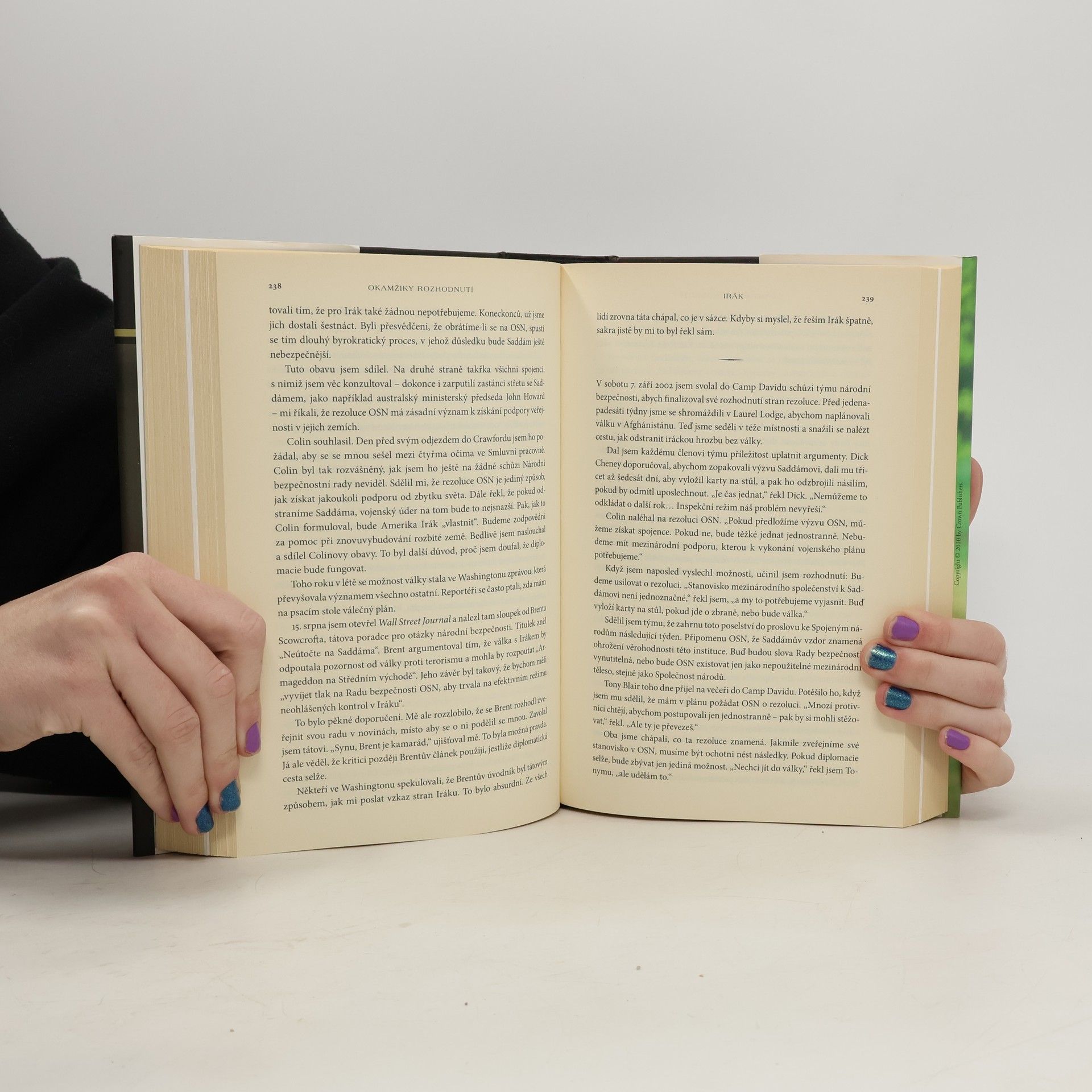Bývalý prezident George W. Bush ve své knize popisuje klíčová rozhodnutí, která formovala jeho prezidentské období a osobní život. Čtenáři se ocitnou na palubě Air Force One po útocích 11. září 2001, v operačním středisku před válkou v Iráku a v zákulisí Bílého domu, kde se rodila důležitá rozhodnutí amerických prezidentů. Bush hodnotí svá rozhodnutí s časovým odstupem, přičemž se zamýšlí nad nejhoršími okamžiky, jako byl hurikán Katrina, a nad svým zklamáním z neúspěchu v postavení Usámy bin Ládina před soud. Kniha rovněž odhaluje jeho vztahy s předními světovými lídry, s poctivým hodnocením důvěry. Bush sdílí i osobní aspekty svého života, včetně fotografií a dopisů s otcem, a vyjadřuje obdiv a lásku k ženě a dcerám. Mnohé příhody ukazují jeho smysl pro humor. Tento pohled na prezidentské paměti představuje zásadní přelom v žánru, osloví příznivce autora, překvapí kritiky a změní pohled na osm let v historii Ameriky a na osobu, která stála v centru dění.