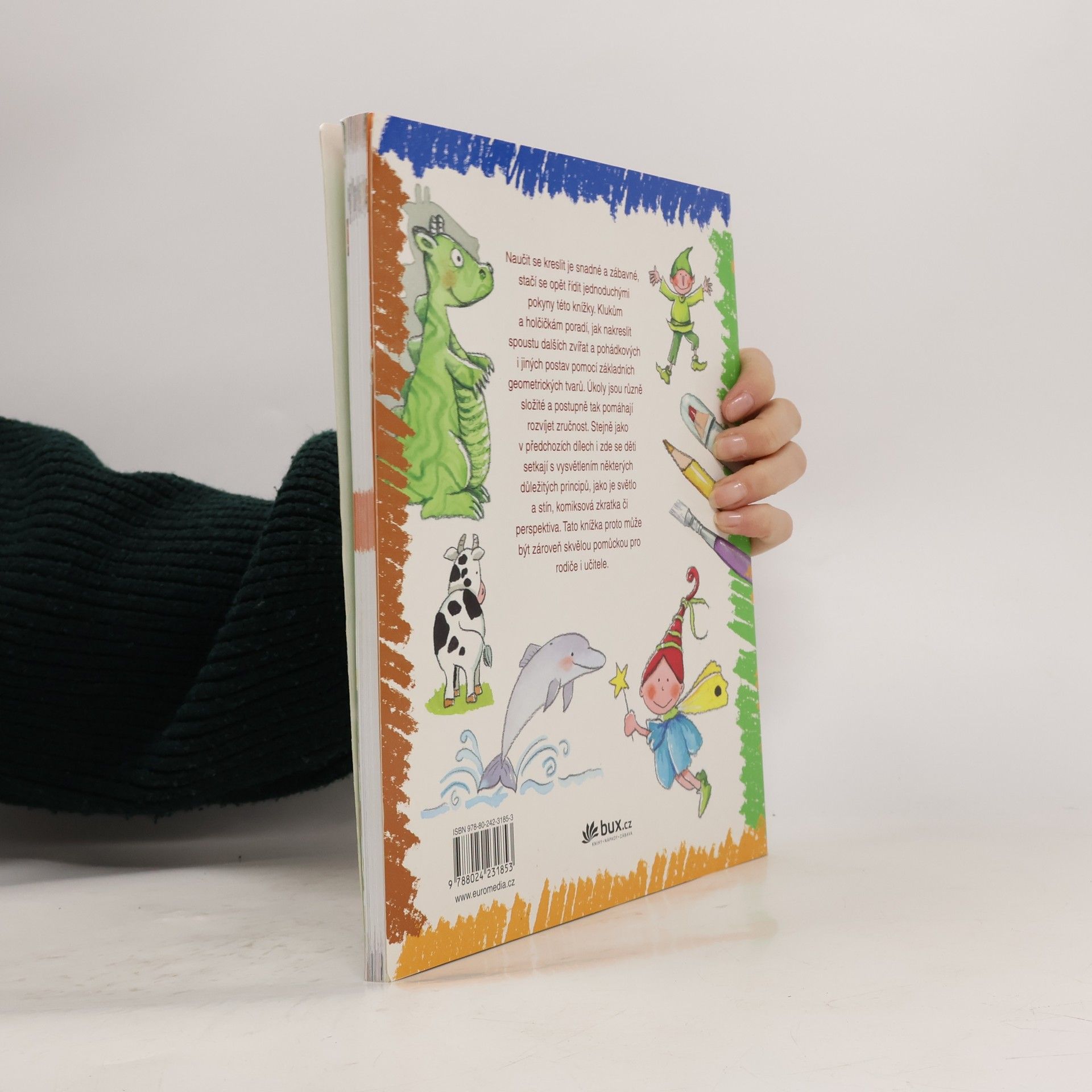 Naučit se kreslit je snadné a zábavné, stačí se opět řídit jednoduchými pokyny této knížky. Klukům a holčičikám poradí, jak nakrestlit spoustu dalších zvířat a pohádkových i jiných postav pomocí základních geometrických tvarů. Úkoly jsou různě složité a postupně tak pomáhají rozvíjet zručnost. Stejně jako v předchozích dílech i zde se děti setkají s vysvětlením některých důležitých principů, jako je světlo a stín, komksová zkratka či perspektiva. Tato knížka proto může být zároveň skvělou pomůckou pro rodiče i učitele.