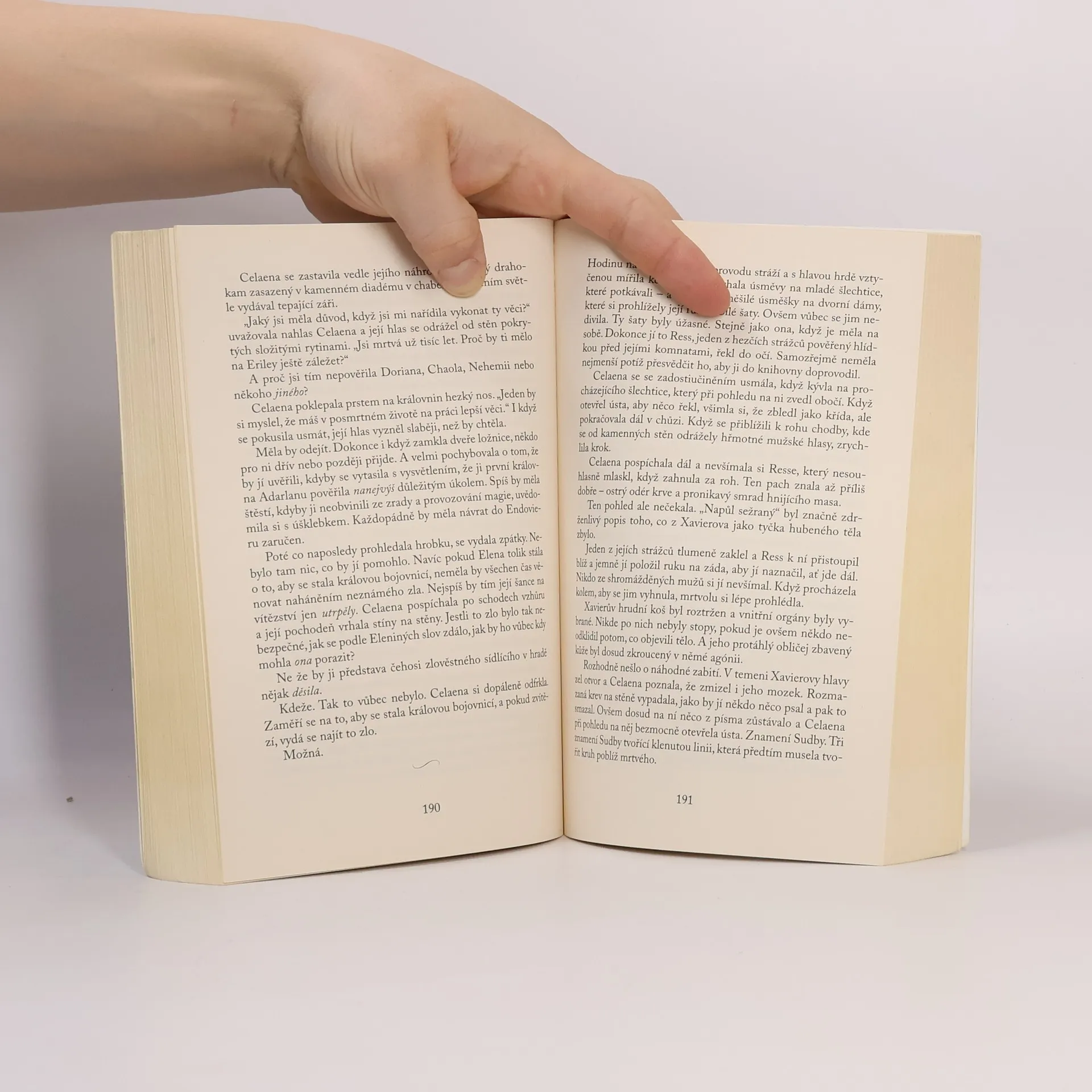 V temných a špinavých solných dolech Endovieru si doživotní trest odpykává osmnáctiletá dívka. Celaene byla od dětství trénovaná k jednomu jedinému úkolu – stát se tím nejlepším zabijákem na světě, rychlým, tichým, neodhalitelným a všehoschopným. Ale udělala chybu. Nechala se chytit. Korunní princ jí nabídne poslední šanci: Svobodu výměnou za velkou oběť. Musí ho reprezentovat v turnaji, kde se proti sobě postaví 24 šampionů, těch nejlepších vrahů a zlodějů z celé země. Bude to boj na život a na smrt. Pokud zvítězí, bude volná. Ovšem její soupeři umírají nejen při soubojích, ale i za tajemných okolností – Celaene teď o svůj život bojuje nejen s nimi, ale i s něčím tajemným a děsivým, co se skrývá v pozadí.