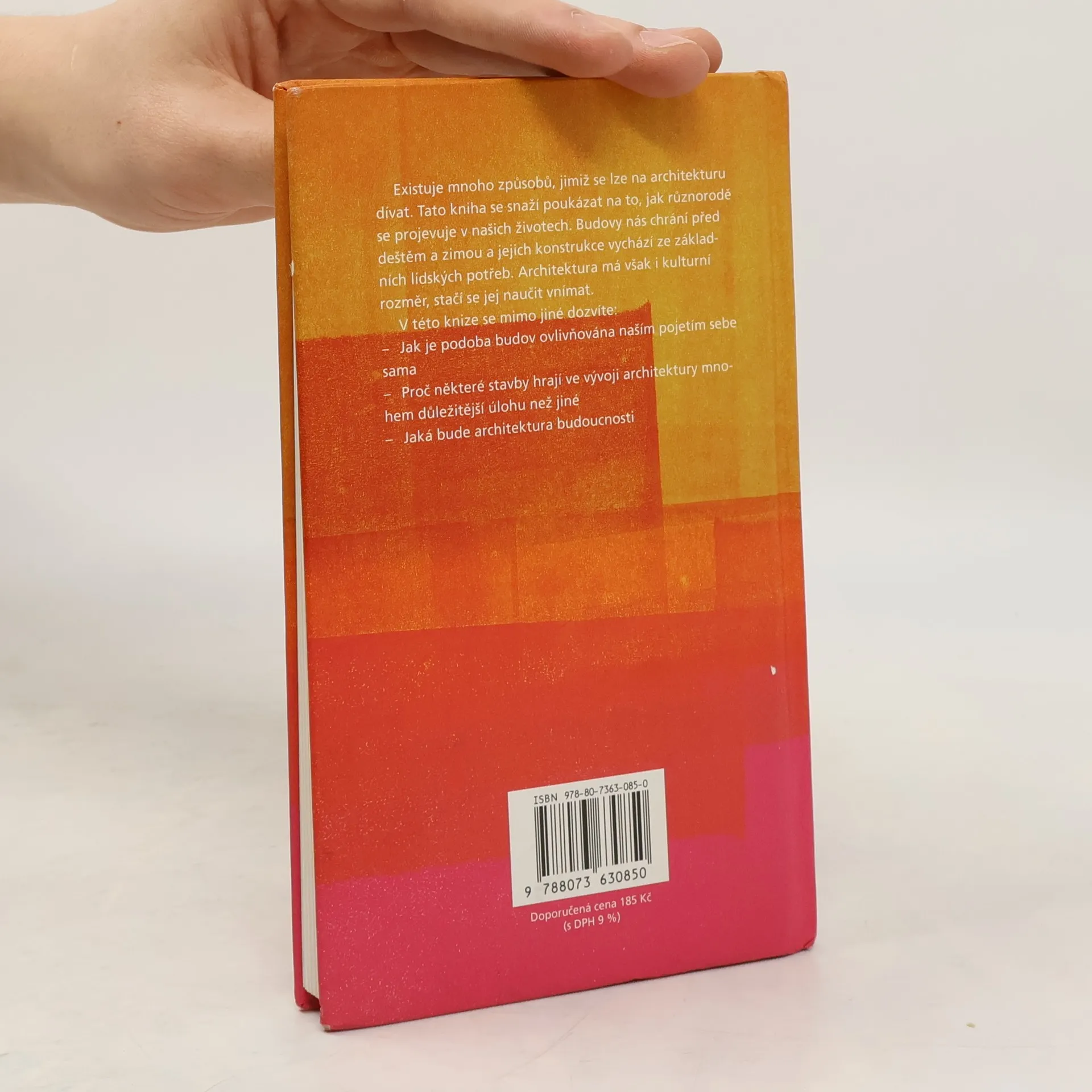 Architektura, průvodce pro každého Netradičně pojatý úvod do architektury - od egyptských pyramid až po extravagantní budovu opery v Sydney. Autor čtenáře seznámí nejen s jednotlivými stavebními slohy, ale osvětlí i ekonomický, politický a estetický význam budov. V této knize se mimo jiné dozvíte: - Jak je podoba budov ovlivňována naším pojetím sebe sama - Proč některé stavby hrají ve vývoji architektury mnohem důležitější úlohu než jiné - Jaká bude architektura budoucnosti