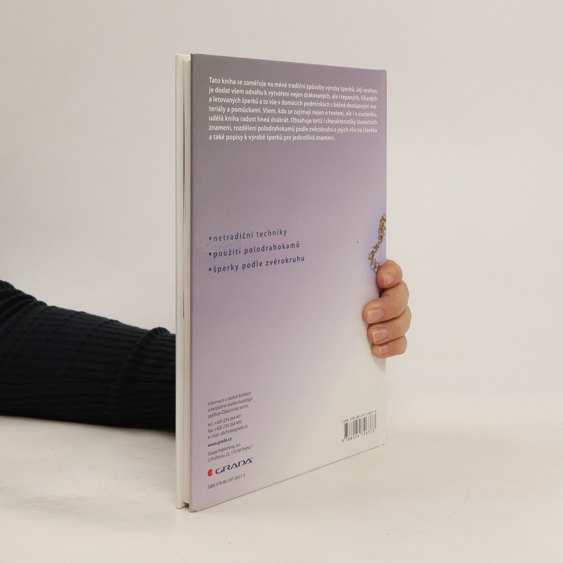 Tato kniha se zaměřuje na méně tradiční způsoby výroby šperků. Její snahou je dodat všem odvahu k vytváření nejen drátovaných, ale i tepaných, žíhaných a letovaných šperků a to vše v domácích podmínkách s běžně dostupnými materiály a pomůckami. Všem, kdo se zajímají nejen o tvoření, ale i o esoteriku, udělá kniha radost hned dvakrát. Obsahuje totiž i charakteristiky slunečních znamení, rozdělení polodrahokamů podle zvěrokruhu a jejich vliv na člověka a také popisy k výrobě šperků pro jednotlivá znamení. BODY: netradiční techniky použití polodrahokamů šperky podle zvěrokruhu.