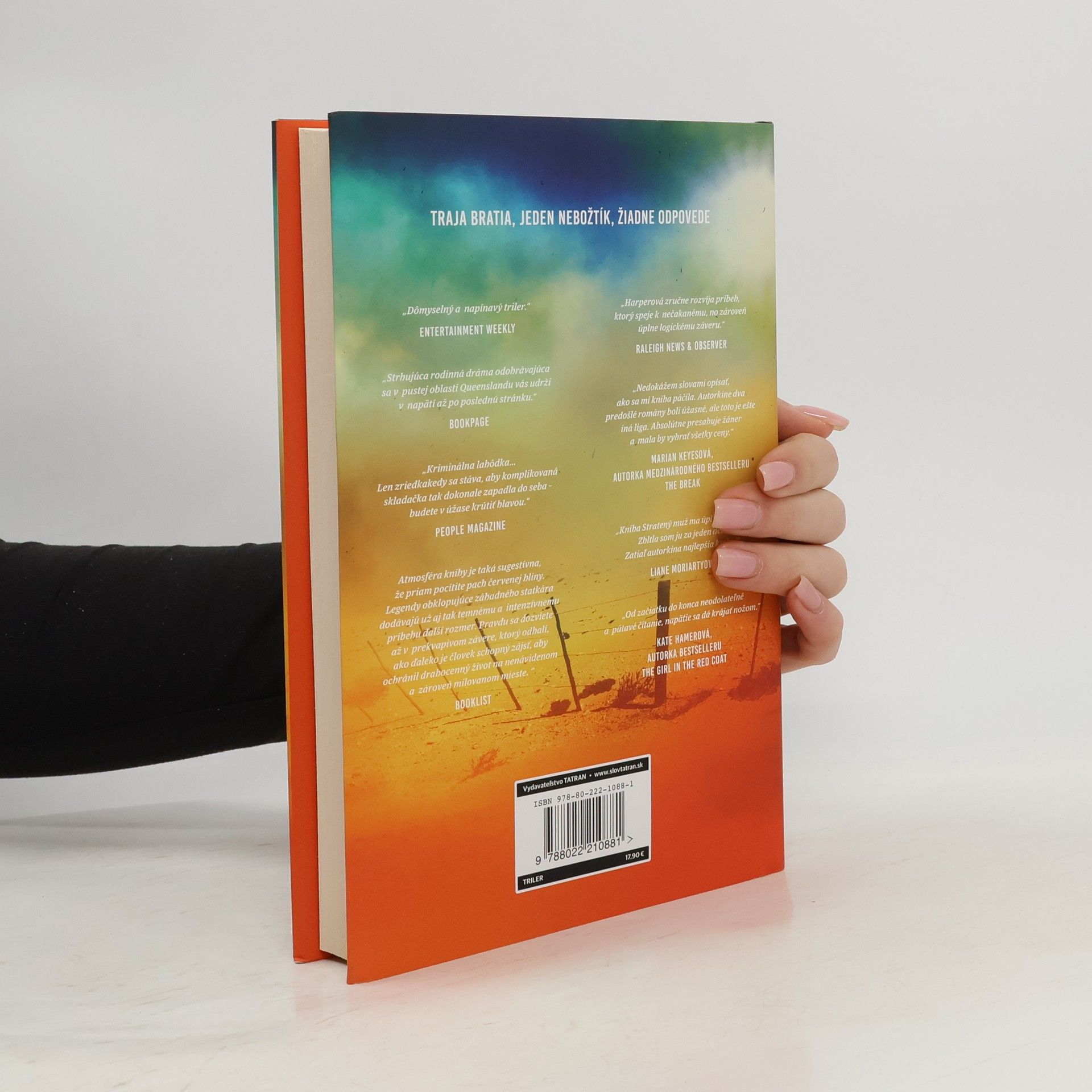 Román vychádzajúcej austrálskej hviezdy kriminálnej literatúry opisuje veľmi sugestívne a so zmyslom pre gradovanie napätia nemilosrdnú austrálsku divočinu a ľudí, ktorí v nej žijú. Sú takí tvrdí a zocelení drsným životom a ťažkou prácou, že neraz dokážu byť krutejší ako sama príroda. Dvaja bratia sa stretnú pri plote oddeľujúcom ich statky. Hlboko v pustom vnútrozemí austrálskeho kontinentu sú široko-ďaleko jediní susedia. Ich domy sú od seba vzdialené na tri hodiny cesty autom. Cam, ich prostredný brat, ktorý sa stará o rodičovský ranč, im leží mŕtvy pri nohách. Zomrel sám, očividne vyčerpaný od smädu a horúčavy. Muži prinesú brata domov na ranč. Rodinu zasiahne hlboký smútok, v ktorom sa rodí neistota, narastá nedôvera a vzájomné upodozrievanie. Čo ak Cameron nezomrel prirodzenou smrťou? Čo ak izolácia a samota uprostred šírej pustatiny menia ľudí na stelesnené zlo? Jane Harperová napísala za tri roky tri bestsellery, podľa jedného z nich nakrúcajú v Hollywoode film. Zanechala novinárske remeslo, pustila sa do písania austrálskych trilerov a natrafila na zlatú žilu.