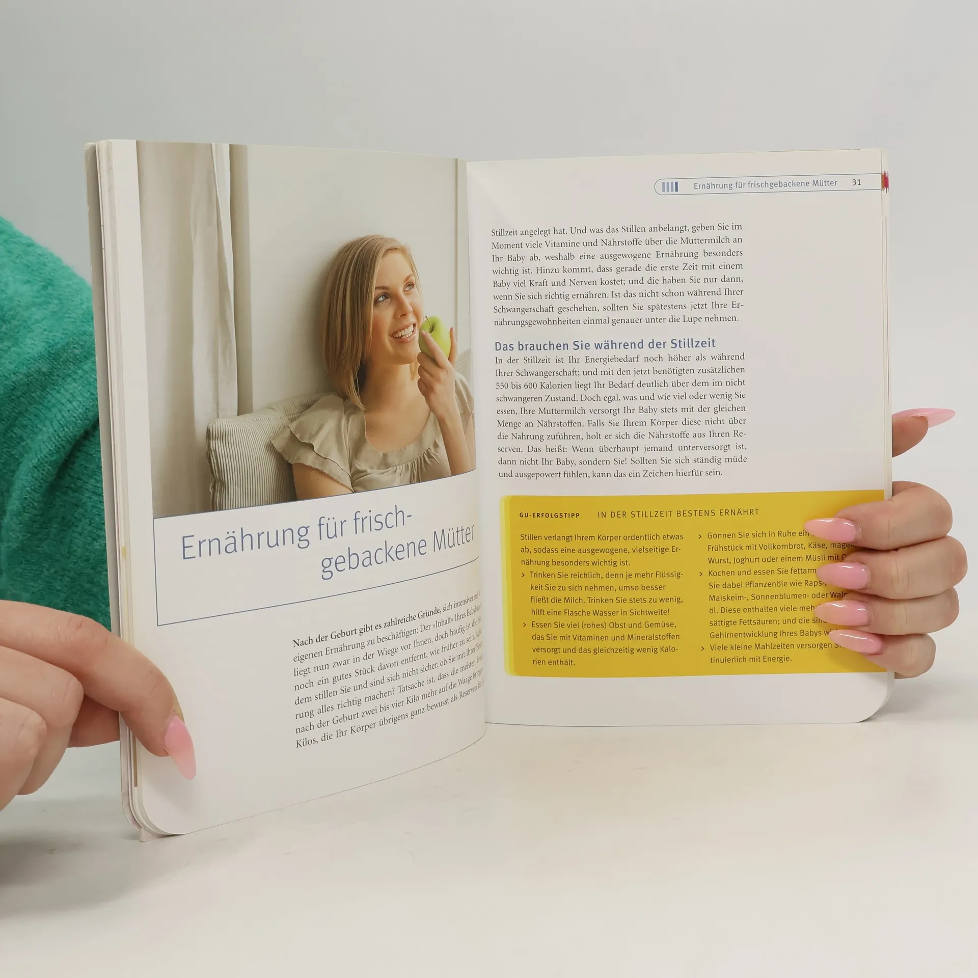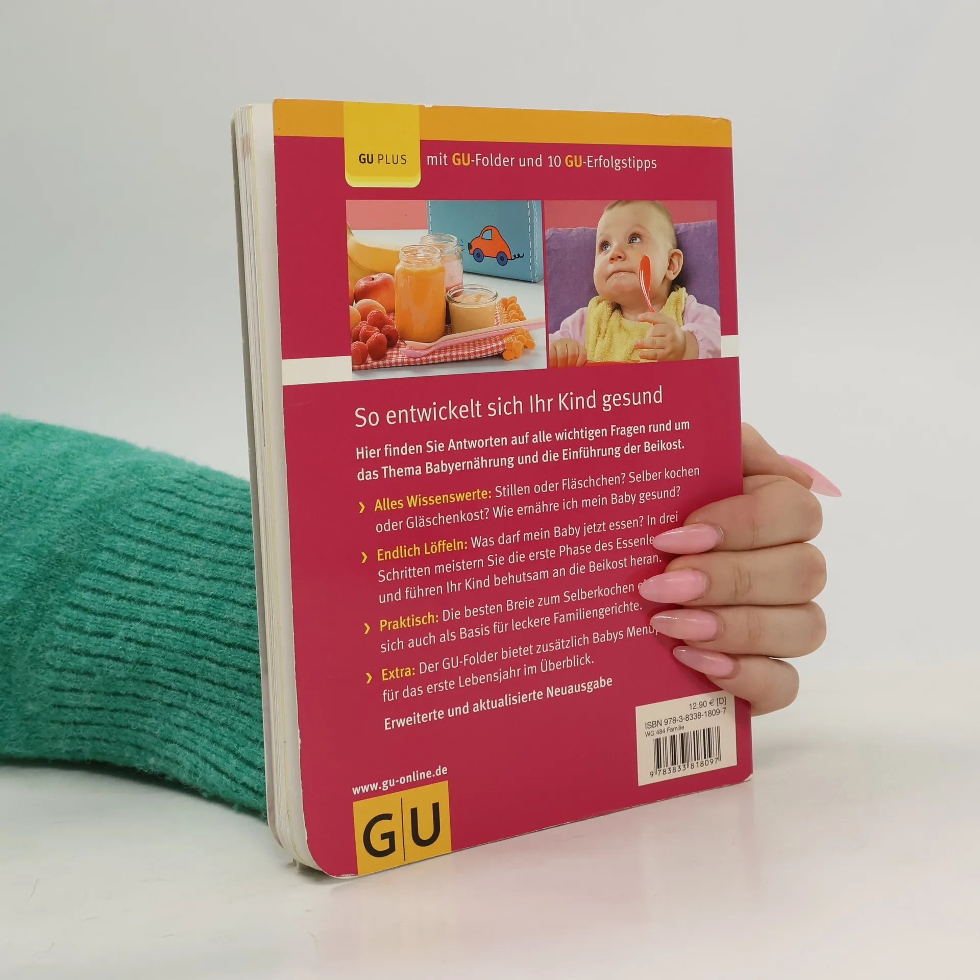 Stillen oder Fläschchen? Welche Milch ist richtig für mein Baby? Und wann gibt’s den ersten Brei? Was soll mein Kind trinken und sind fertige Gläschen vielleicht doch besser als ihr Ruf? Die Ernährung des Babys ist eines der wichtigsten Themen im ersten Lebensjahr und stellt jede frischgebackene Mutter vor eine Fülle von offenen Fragen. Dieser Ratgeber zum Thema Babyernährung liefert fundierte und kompetente Entscheidungshilfen. Für jede Variante gibt es viele nützliche Tipps und Infos, worauf bei der Zubereitung bzw. beim Kauf zu achten ist. Die Rezepte fürs Baby lassen sich mit geringem Aufwand in Gerichte für die ganze Familie abwandeln. Gesundheitliche Aspekte wie z. B. Allergievorbeugung und die richtige Ernährung bei Allergikerbabys werden ausführlich behandelt. Der beigelegte GU-Folder bietet eine sehr gute und schnelle Übersicht, was das Baby in welchem Lebensmonat essen darf.