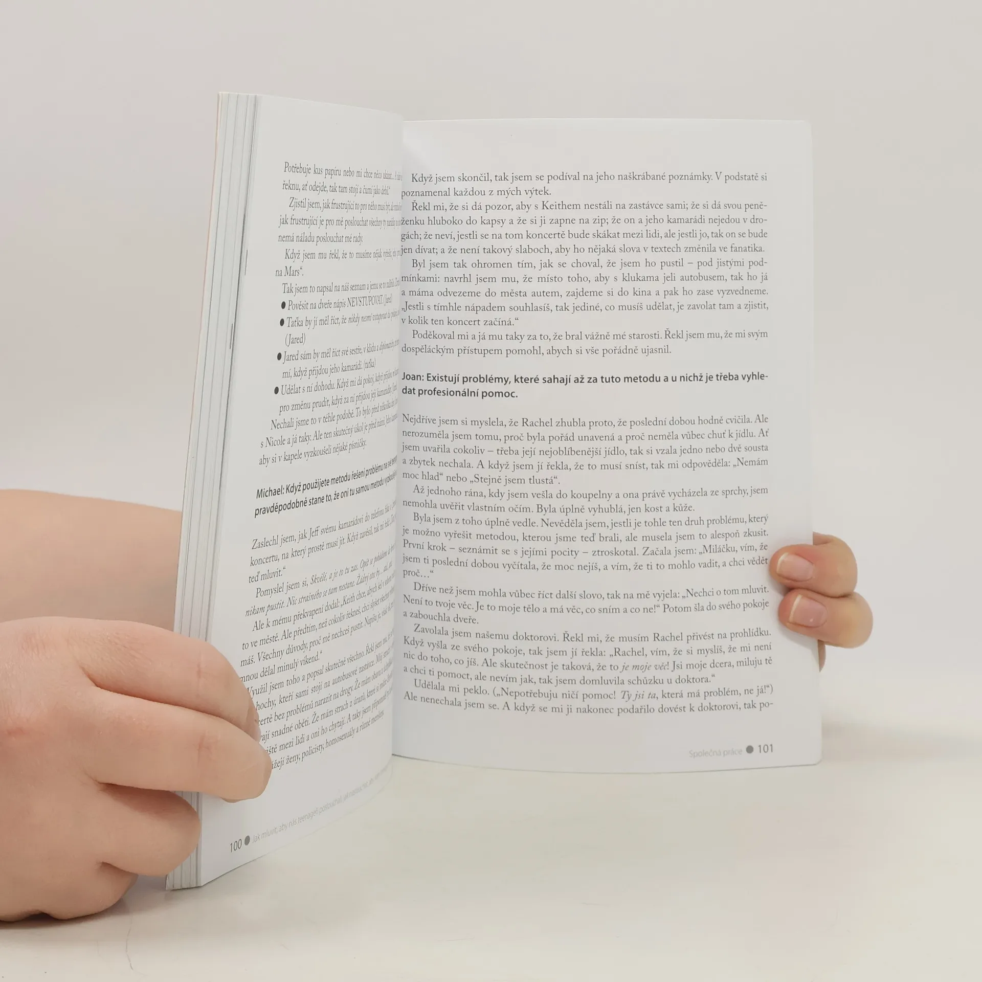 Světový bestseller. Názorný, srozumitelný a velmi čtivý návod jak vycházet s teenagery. Název přesně vystihuje obsah knihy. Ukázkové dialogy a situace řeší jak s teenagery mluvit, aby slova dospělých brali vážně, a poskytují rady jak teenagerům naslouchat, aby v dospělých viděli partnera, nikoliv nepřítele. Autorky využívají své zkušenosti ze seminářů s rodiči a jejich dospívajícími dětmi.