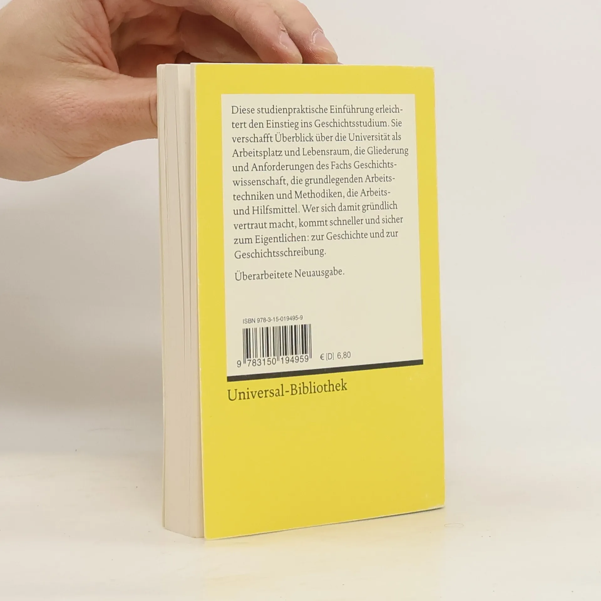 Diese studienpraktische Einführung erleichtert den Einstieg ins Geschichtsstudium. Sie verschafft Überblick über die Universität als Arbeitsplatz und Lebensraum, die Gliederung und Anforderungen des Fachs Geschichtswissenschaft, die grundlegenden Arbeitstechniken und Methodiken, die Arbeits- und Hilfsmittel. Wer sich damit gründlich vertraut macht, kommt schneller und sicher zum zur Geschichte und zur Geschichtsschreibung.