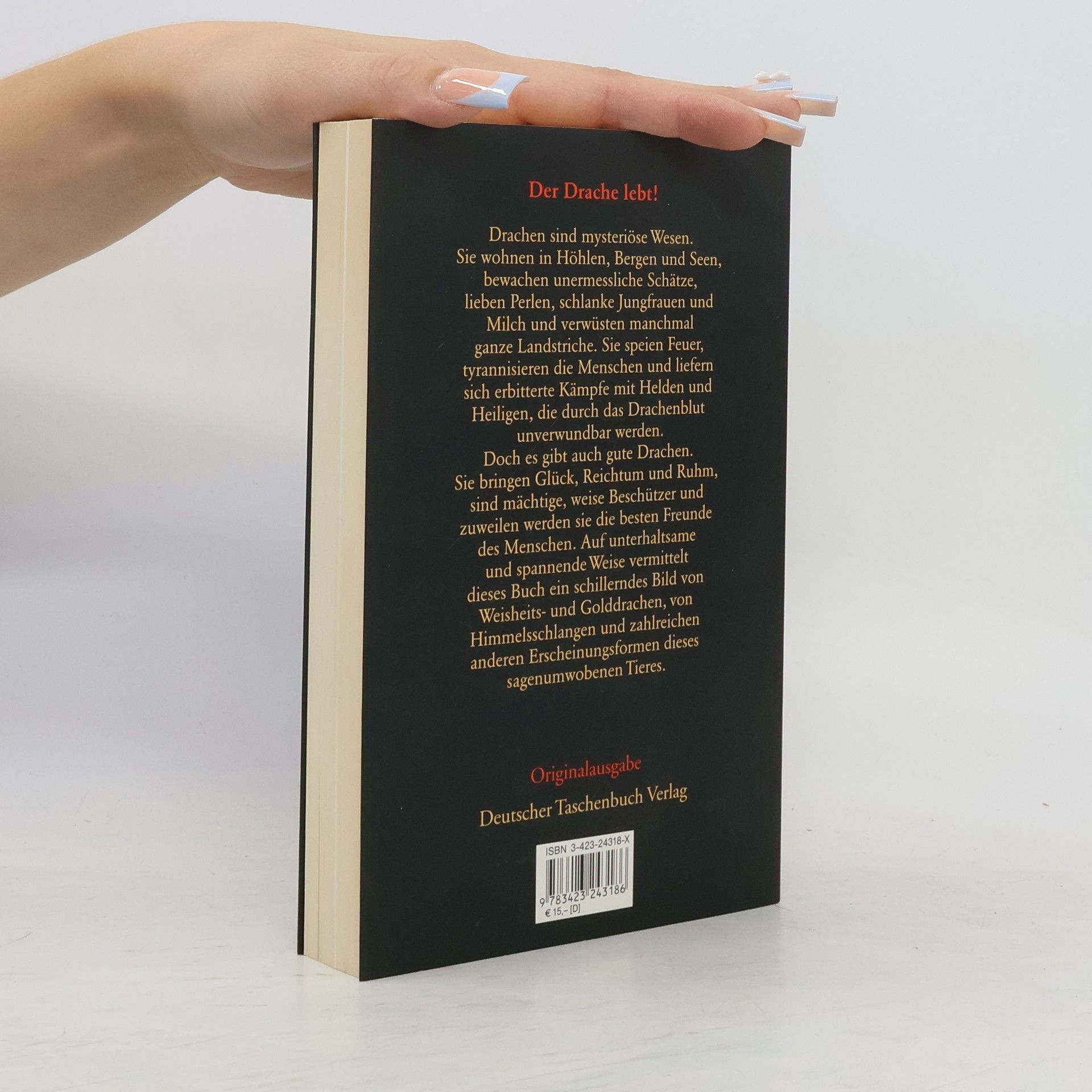 Über das wahre Wesen der Drachen gibt es unzählige Spekulationen. Sind sie reine Fantasiegebilde, nur geeignet, kindlichen Gemütern ein wohliges Schaudern über den Rücken zu jagen? Sind sie eine dämonische Urmacht, Sinnbilder des Chaos, Gegenspieler Gottes? Sind sie, wie Märchenforscher, Mythenkundler und Zoologen darlegen, eine Allegorie der Mondfinsternis, Personifizierungen der Sommerglut, archetypische Symbole, genetisch eingepflanzte Erinnerungen an Tyrannosaurus Rex und Konsorten oder einfach Mumpitz? Sind sie gar, wie Nessie-Sichtungen, alte chinesische Texte und moderne Fantasyliteratur nahe legen, ebenso reale Geschöpfe wie Menschen, Igel, Feen und Götter?