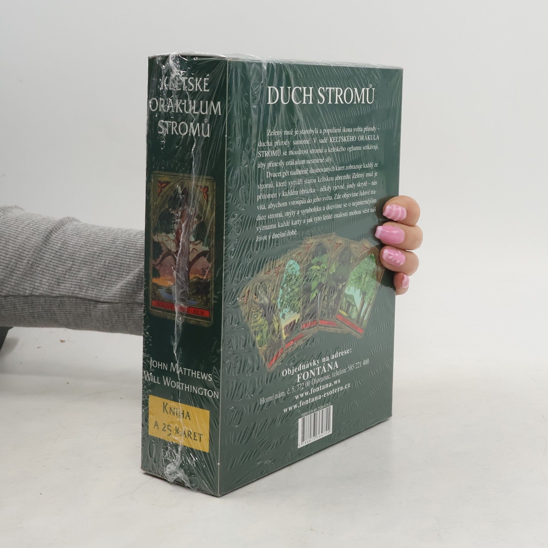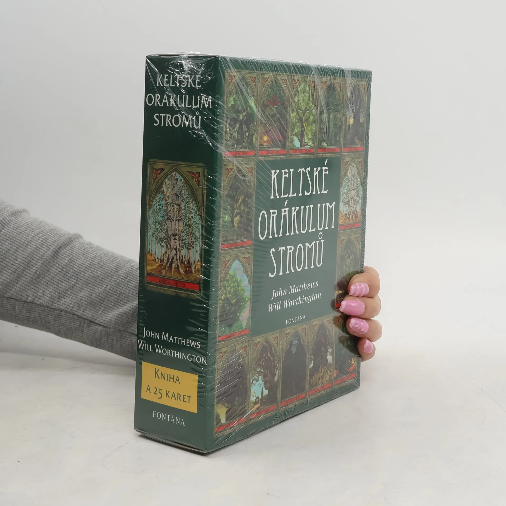 Zelený muž je starobylá a populární ikona světa přírody – ducha přírody samotné. V sadě Keltského orákula stromů se moudrost stromů a keltského oghamu setkávají, aby přinesly orákulum nesmírné síly. Dvacet pět nádherně ilustrovaných karet zobrazuje každý ze stromů, které vytváří starou keltskou abecedu. Zelený muž je přítomen v každém obrázku – někdy zjevně, jindy skrytě – nás vítá, abychom vstoupili do jeho světa. Zde objevíme lidové tradice stromů, mýty a symboliku a dozvíme se o nejniternějším významu každé karty a jak tyto letité znalosti mohou vést náš život v dnešní době.