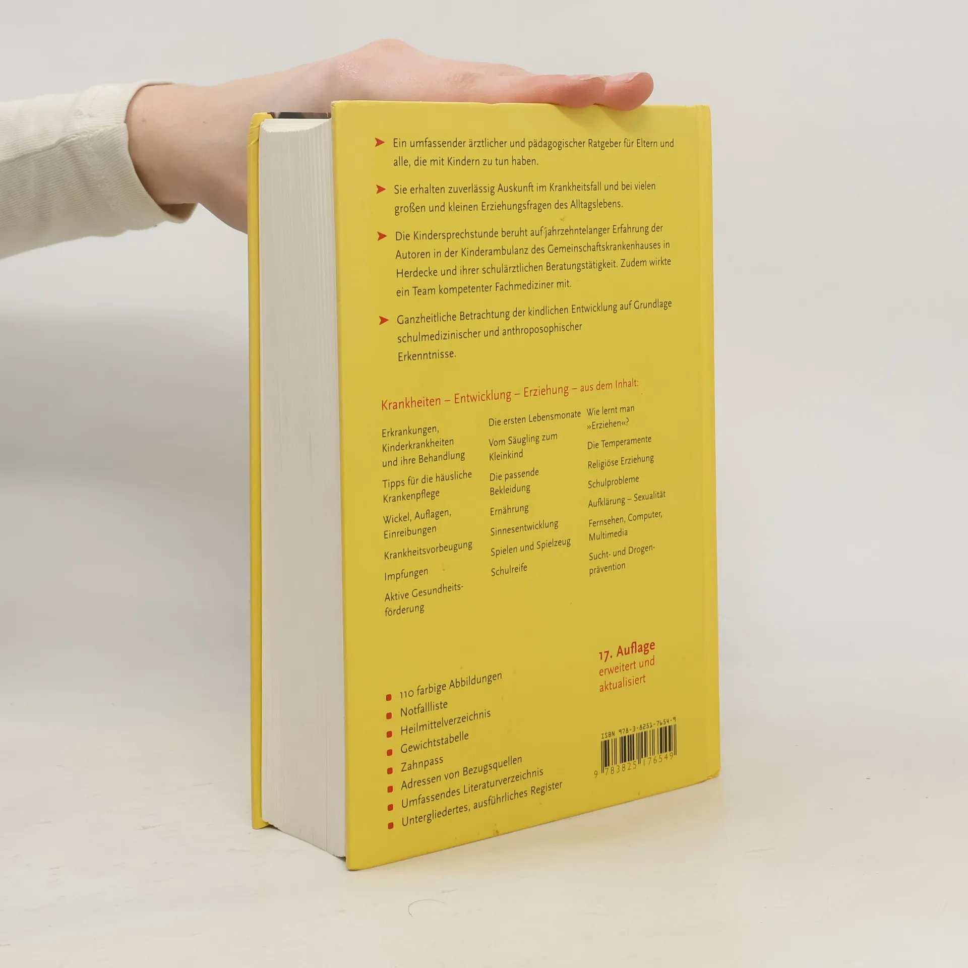 Das Standardwerk zur Kinderheilkunde und Pädagogik behandelt umfassend aktuelle Themen der Pädiatrie. Die überarbeitete Neuauflage beleuchtet wichtige Aspekte wie vorgezogene Schulpflicht, die Zunahme von Essstörungen, Änderungen bei Impfempfehlungen und neue Erkenntnisse zur Ernährung von Kindern. Die vorgezogene Schulpflicht wird als Eingriff in die Entwicklung der Kinder betrachtet, der weitreichende Konsequenzen haben kann. Essstörungen wie Magersucht und Bulimie gewinnen zunehmend an Bedeutung. Das Buch bietet bewährte Hilfen in sämtlichen Bereichen der Erziehung und Medizin und berücksichtigt langjährige Erfahrungen mit Behandlungsmethoden, die die tieferen Ursachen von Erkrankungen in den Fokus rücken. Es behandelt Themen wie die ersten Lebensmonate, Ernährung, Erkrankungen und deren Behandlung, Erste Hilfe, häusliche Krankenpflege, Krankheitsvorbeugung, Impfungen, aktive Gesundheitsförderung, Sinnesentwicklung, Schulreife, religiöse Erziehung, Aufklärung, Suchtprävention sowie Umweltschutz. Zudem enthält es eine Notfall-Liste, ein Heilmittelverzeichnis, eine Gewichtstabelle, einen Zahnpass, Adressen von Bezugsquellen und ein umfassendes Literaturverzeichnis. Ein detailliertes Register rundet das Werk ab.