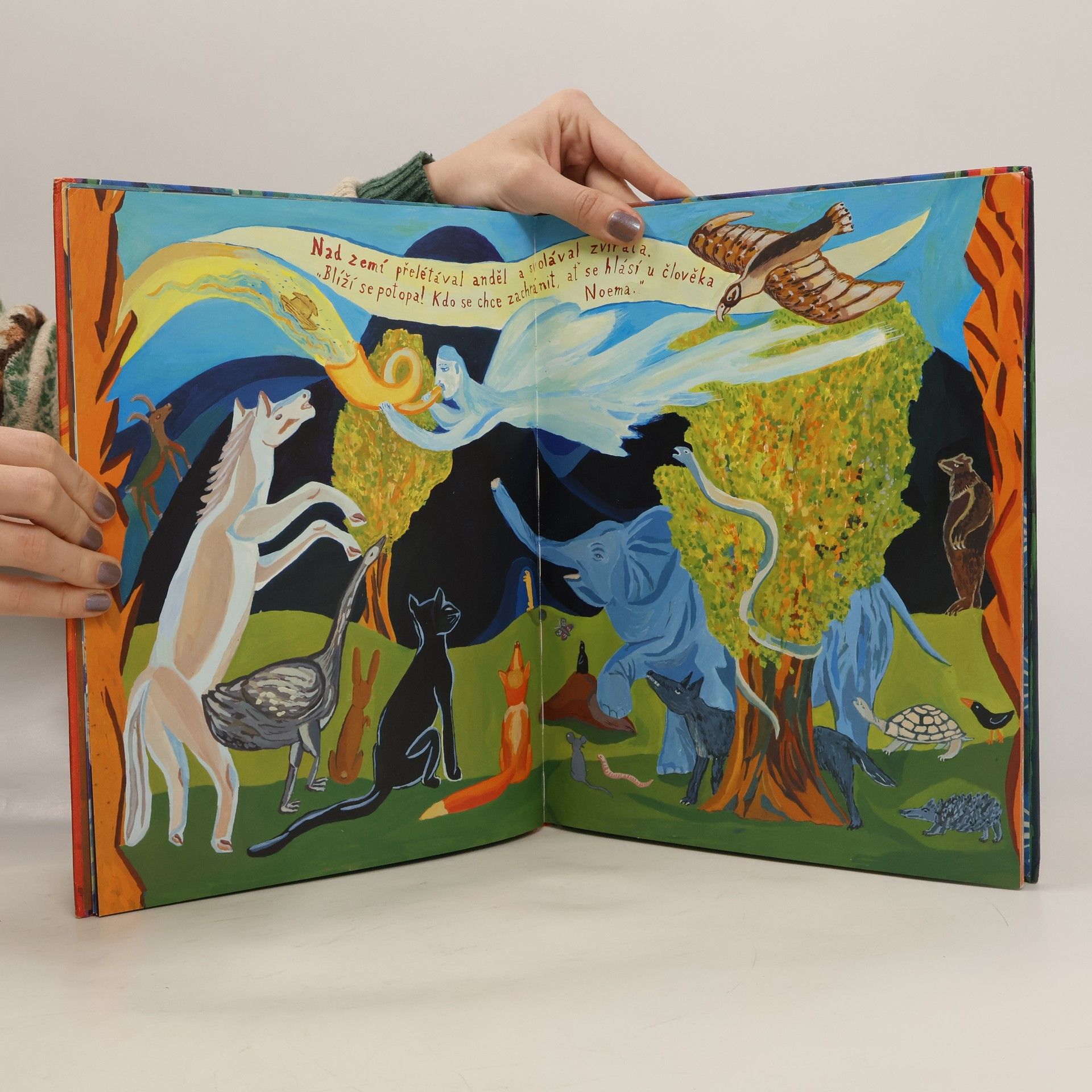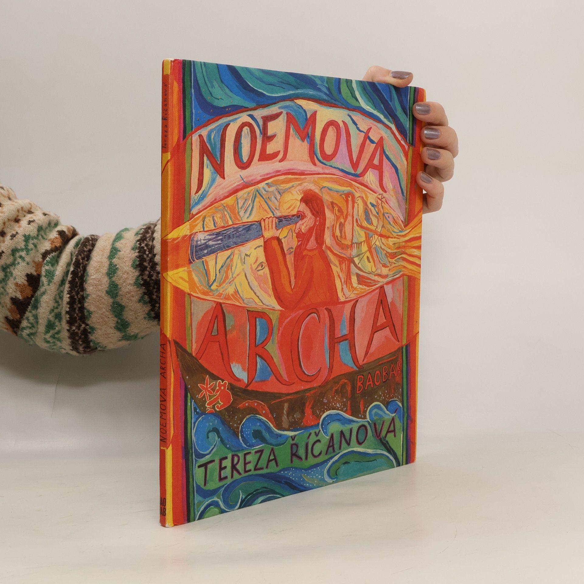 Obrazové album, které podle starodávného biblického příběhu a událostí na vlastním dvoře nakreslila Tereza Říčanová, nechává znovu ožít příběh o záchraně Noema a jeho rodiny. Ilustrace vyprávějí o časech před potopou, o andělu zvěstovateli, Noemově rodině, potopě, záchraně Archy a nové úmluvě mezi Bohem a lidmi. Autorka zvolila pro své vyprávění zcela osobní a jako vždy originální přístup. Ve velkém příběhu umí skvěle najít drobnosti, jež vyprávění dodávají autenticity a osobní síly. Například zvířata oslovuje k záchraně anděl, přičemž nezapomene ani na malé brouky v trávě, a lidé každému zvířeti jeho komůrku vysmolí, aby do ní nenatekla voda. Autorka navazuje na své předchozí autorské knihy vydané v nakladatelství Baobab: Kozí knížka, Vánoční knížka a zpěvník lidových písní Měsíček svítí. Nové obrazové album malířky a ilustrátorky Terezy Říčanové navíc prohlubuje kompozicí díla, neboť text se stal součástí ilustrací a podtrhuje archetyp vyprávění tohoto dávného příběhu. Ilustrace v knize Noemova archa přibližují dětem svět skutečného umění: autorka se nezalekne abstrakce ani velkých krajinných kompozic. A i v této knize stvrzuje svůj nezaměnitelný expresivní, svérázný a přímočarý způsob tvorby, který z dětského čtenáře činí plnoprávného partnera v dialogu mezi autorem a čtenářem.