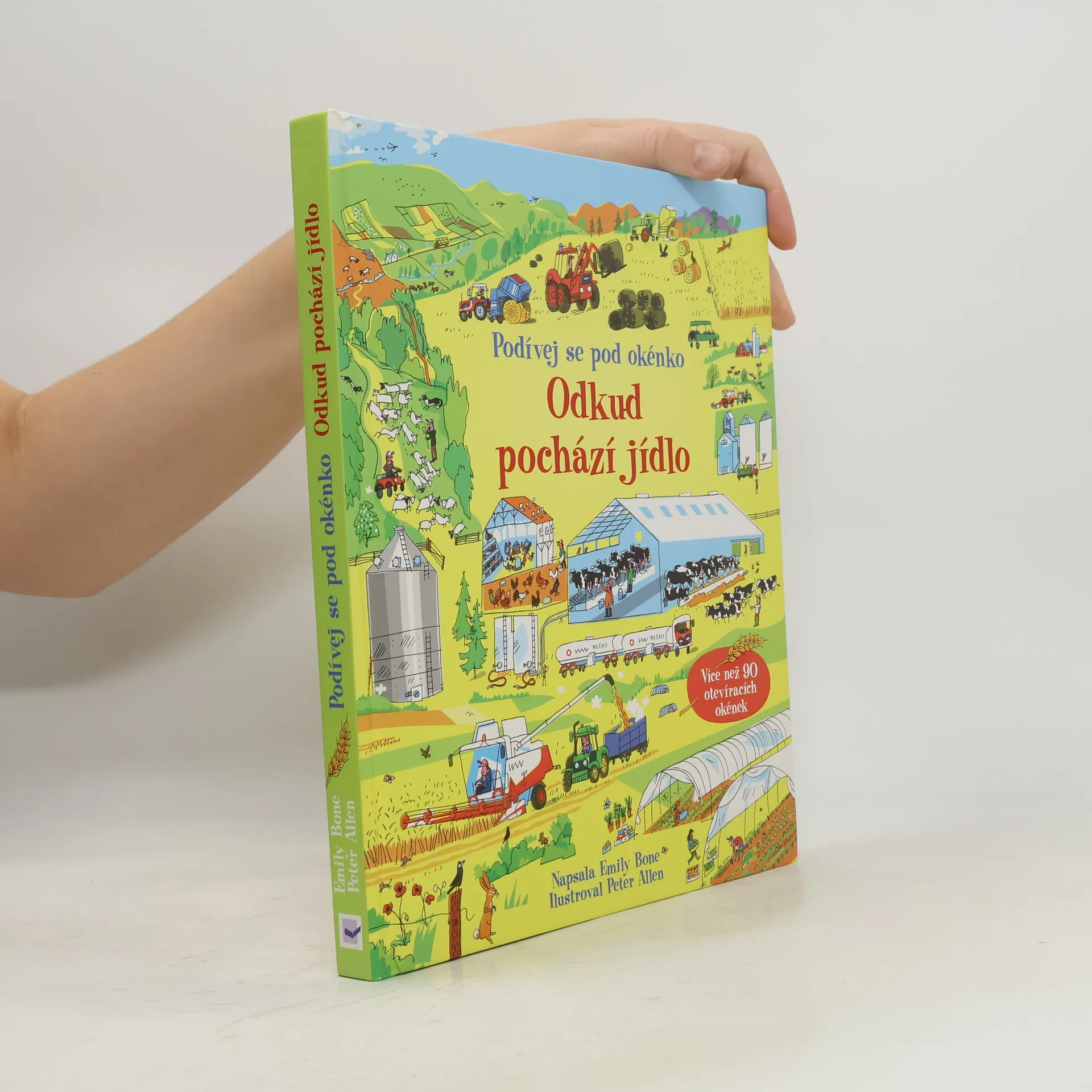 Máme je na stole každý den – mléko, sýry, maso, ovoce i zeleninu. Kde se ale všechno to jídlo vzalo? Myslíš, že ze supermarketu? Kdepak! Vše, co jíme, se muselo nejprve někde vypěstovat nebo chovat, potom zpracovat, uložit, zabalit… Je to dlouhá cesta a ty ji teď díky této knížce můžeš poznat. Odkud získáváme mléko? Jak se pěstují jahody, pomeranče nebo hrášek? Vše důležité o jídle a potravinách, domácích i exotických, se dozvíš z této krásně ilustrované knížky se spoustou odklápěcích okének. Pod každým z nich se skrývá spousta zajímavostí a informací o rostlinách, zvířatech, jak se chovají či pěstují, a co všechno je potřeba udělat před tím, než se jídlo dostane do obchodů a do naší spíže nebo ledničky. Otevři knížku a objevuj! Dobrou chuť! České vydání publikace nakladatelství Usborne.