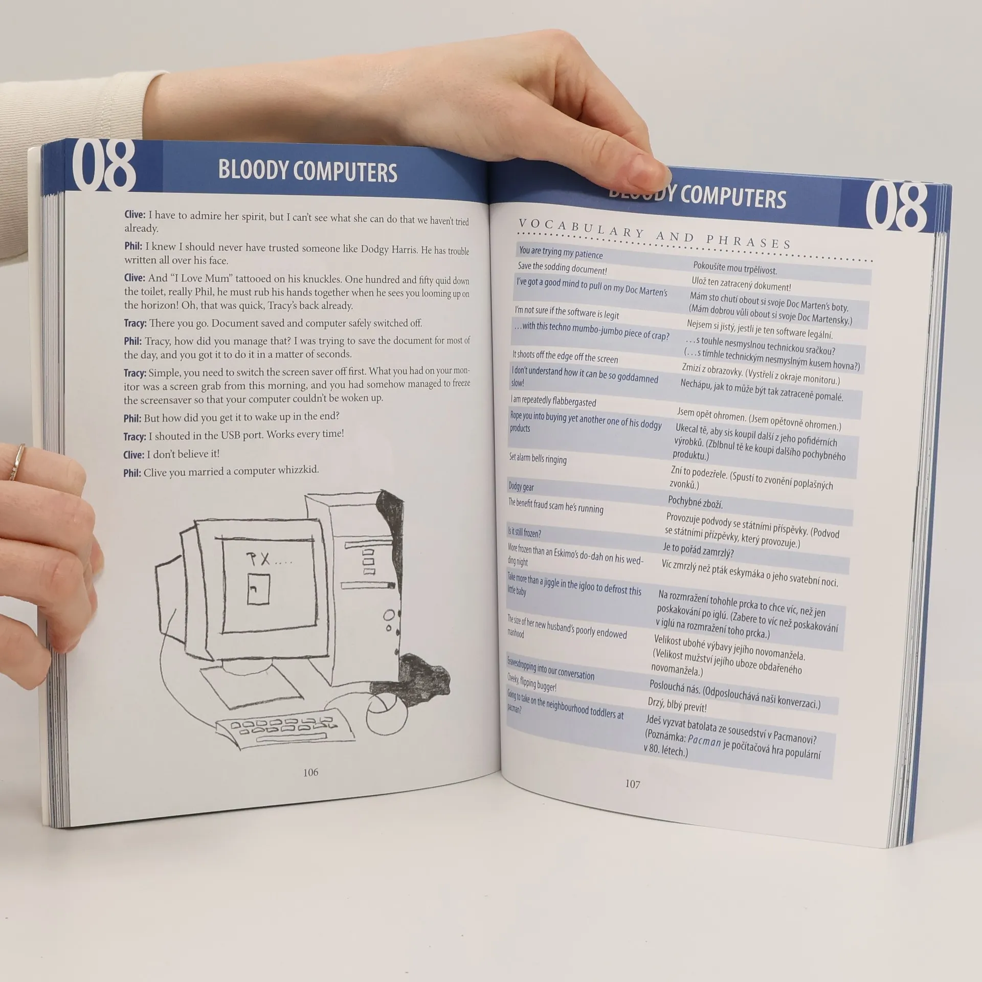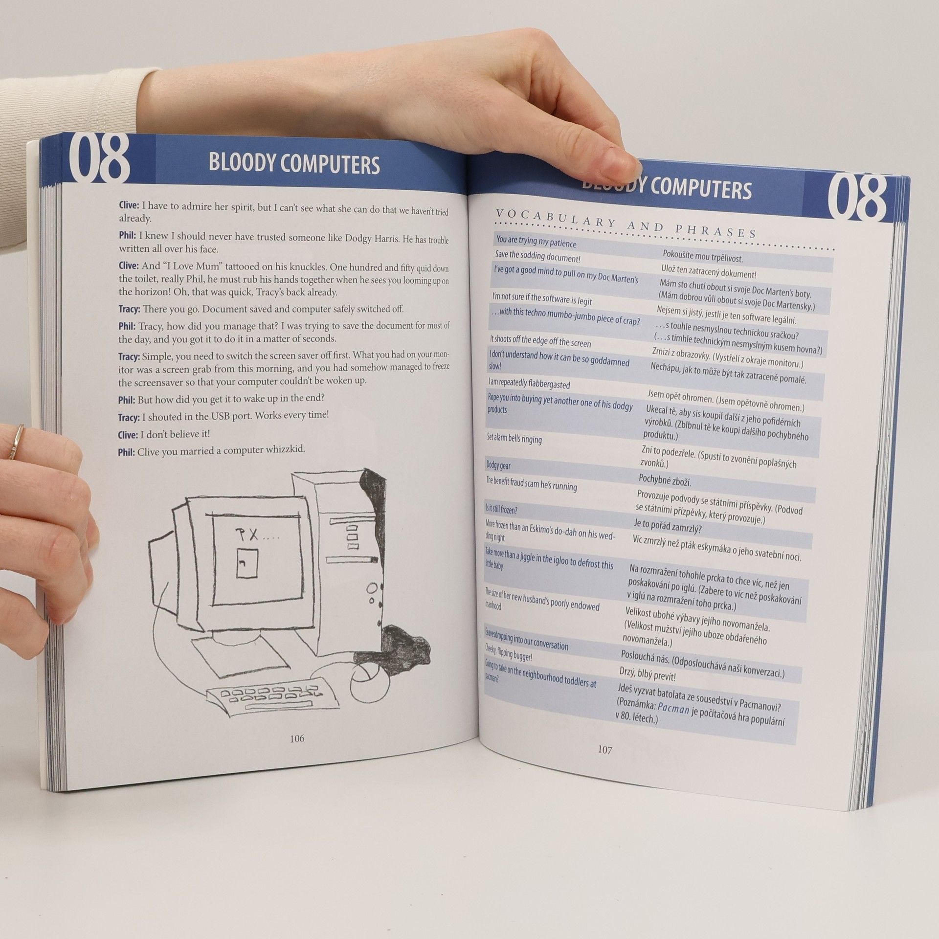 Publikace vedená jako foto-komiks nabízí trochu jinou angličtinu, než jakou užívají přes den uhlazení gentlemani. Je však ze života! Projde s vámi témata nejčastěji nad pivem probíraná: sex, fotbal, přátele, TV, počítače, auta, potomky ad. Diskutuje je čtveřice anglických samorostů. Za každým článkem následuje výklad frází a kontrolní otázky.