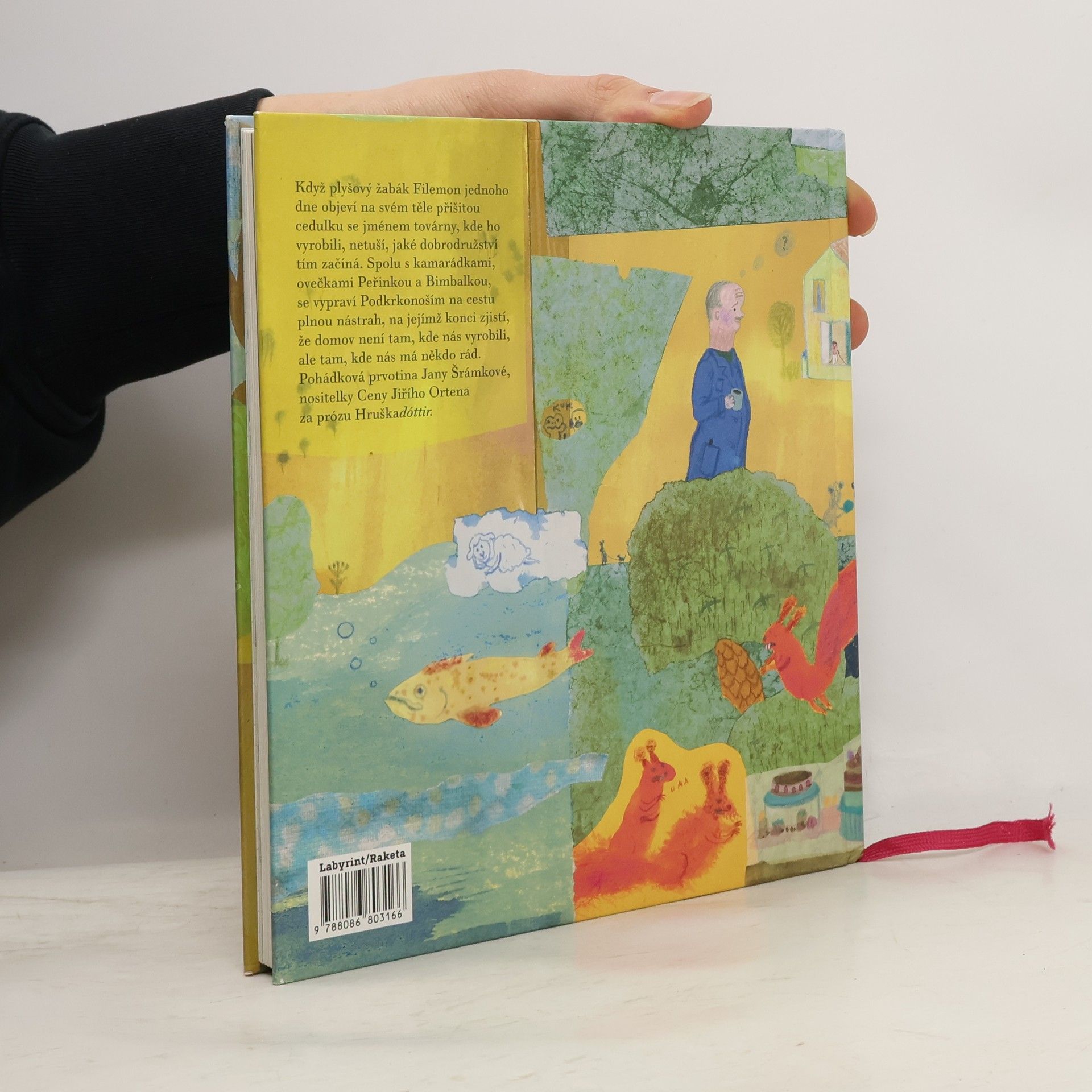 Pohádková prvotina Jany Šrámkové, která v roce 2009 získala za svou psychologickou novelu Hruškadóttir Cenu Jiřího Ortena. Když plyšový žabák Filemon jednoho dne objeví na svém těle přišitou cedulku se jménem továrny, kde ho vyrobili, netuší, jaké dobrodružství tím začíná. Spolu s kamarádkami, ovečkami Peřinkou a Bimbalkou, se vypraví Podkrkonoším na cestu plnou nástrah, na jejímž konci zjistí, že domov není tam, kde nás vyrobili, ale tam, kde nás má někdo rád. Pro děti od 6 do 12 let.