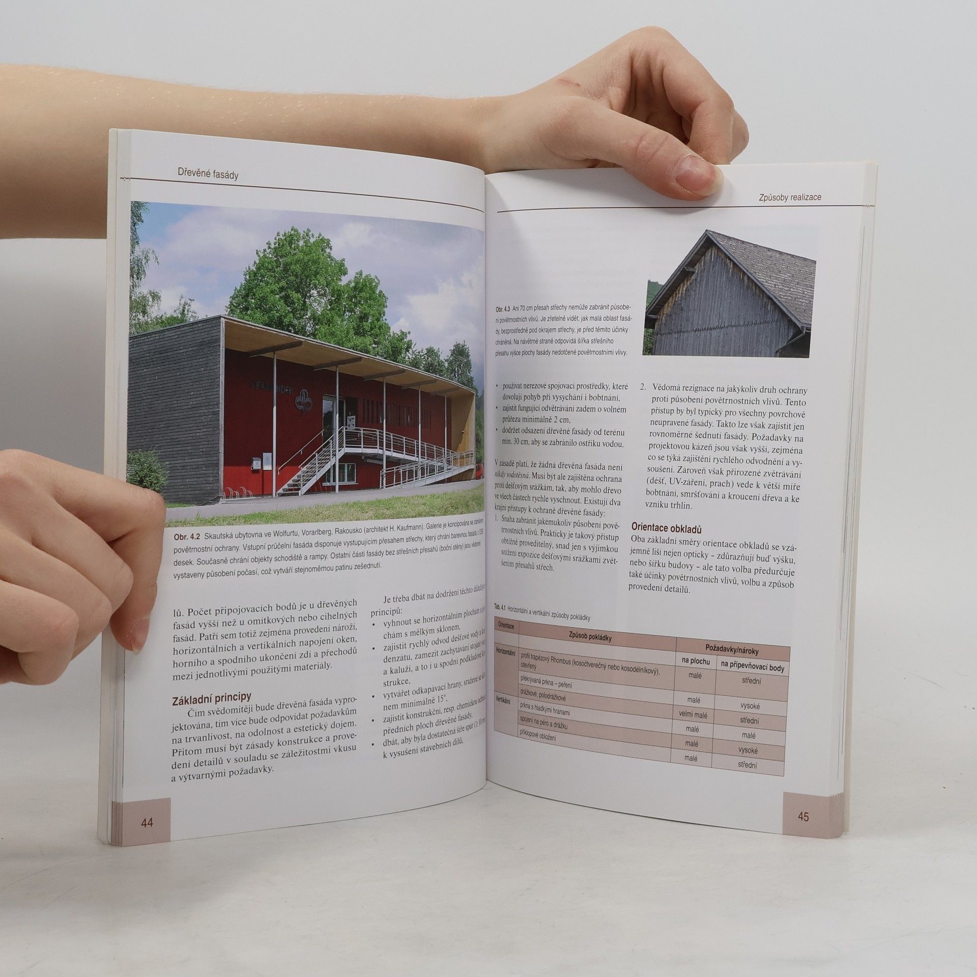 Kniha se zabývá praktickými zásadami projekce, konstrukce a realizace dřevěných fasád a je určena praktikům, stavebníkům a zájemcům o výstavbu a rekonstrukci fasád rodinných domů i veřejných staveb. Předpokladem pro dlouholeté fungování dřevěné fasády na domě je správný výběr materiálu, dodržení zásad pro správné provedení obkladu a následná péče a údržba fasády. Všechny tyto informace sestavil renomovaný architekt s pětadvacetiletou praxí a seznamuje s nimi čtenáře na mnoha příkladech řešení detailů, nároží, soklů, napojení střech a oken a jejich začlenění v dřevěných fasádách. Autorovy praktické zkušenosti s konstrukcemi dřevěných domů a fasád prostupují celou publikací a poskytují čtenáři kritický, ale zároveň i pozitivně inspirující přehled různého praktického provedení fasád na příkladech z Německa a ze sousedních zemí.