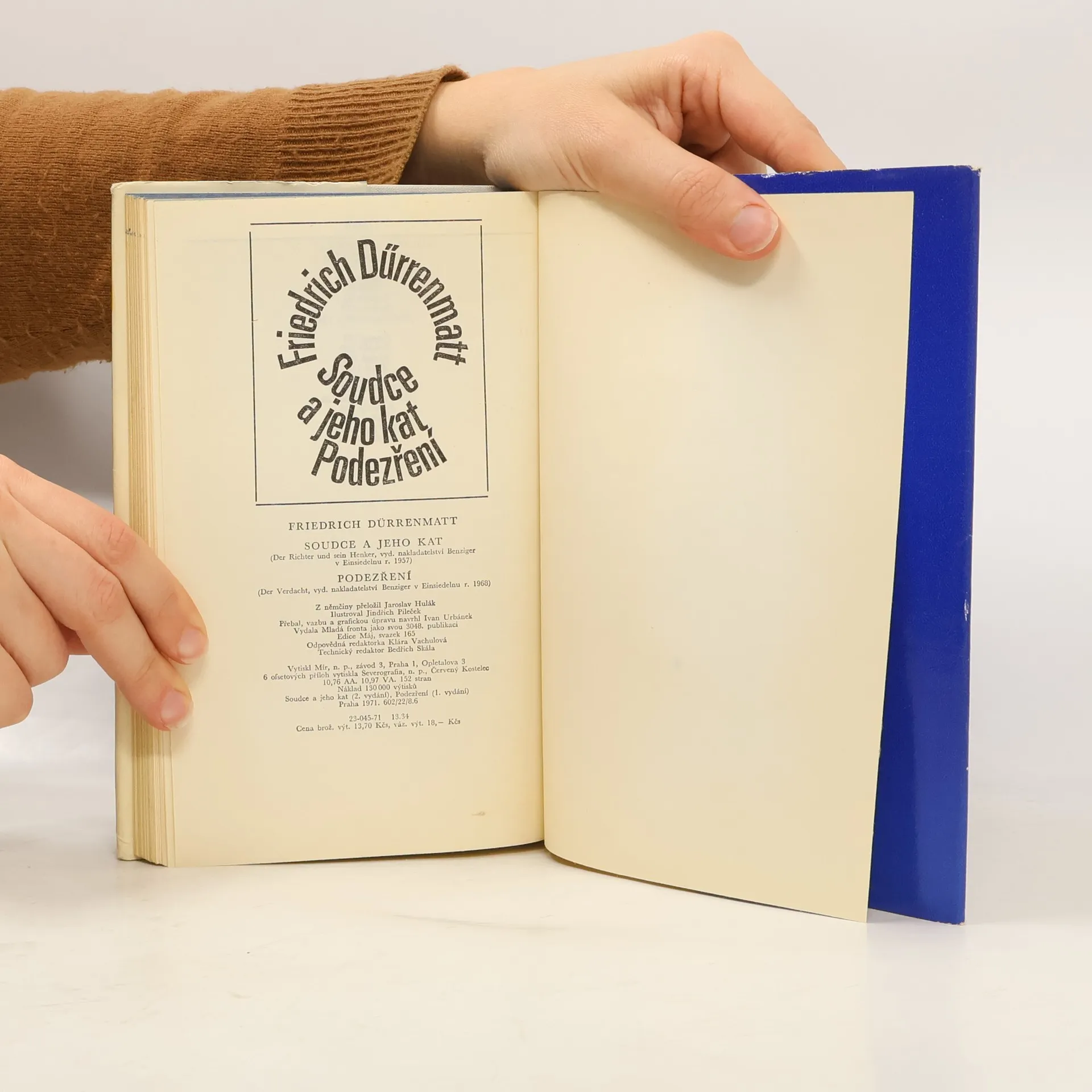 Dürrenmatt je typem spisovatele, který se snaží dobrat pravdy zmocněním syrové reality. Činí tak komediální formou, tvrdí, že jen tak lze odhalit jádro věci a objasnit tragično. Své myšlenky přetavuje do symbolů a s oblibou si volí extrémní situace. Nejlépe mu totiž umožňují uplatňovatkombinaci vypravěčských prvků realistických s nerealistickými. Prostřednictvím jednotlivých postav obrací se na čtenáře s palčivými otázkami, útočí na jeho intelekt a nutí ho k zamyšlení. Všechny Dürrenmattovy příběhy vynikají nesmírně citlivými psychologickými studiemi s hlubokou analýzou všelidských vztahů. K nim se řadí i právě vydané romány Soudce a jeho kat a Podezření, jež bezesporu náležejí k vysoce náročným uměleckým dílům světové literatury.
