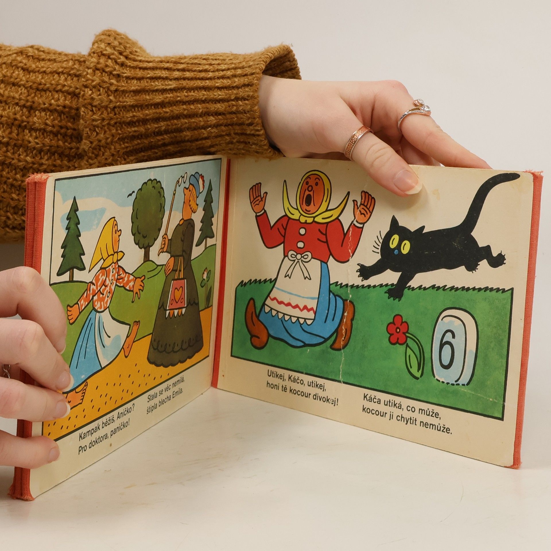 Klasické leporelo, které poprvé vyšlo před sedmdesáti lety (1941)! V nakladatelství Albatros nově a poprvé v roce 1968; později v pozměněném vydání pod názvem Utíkej, Káčo, utíkej! Veselé leporelo Josefa Lady s lidovými říkadly o koťatech, zajíčkovi, vodníkovi, zimě, houbách... je dnes českou klasikou i nakladatelským evergreenem.