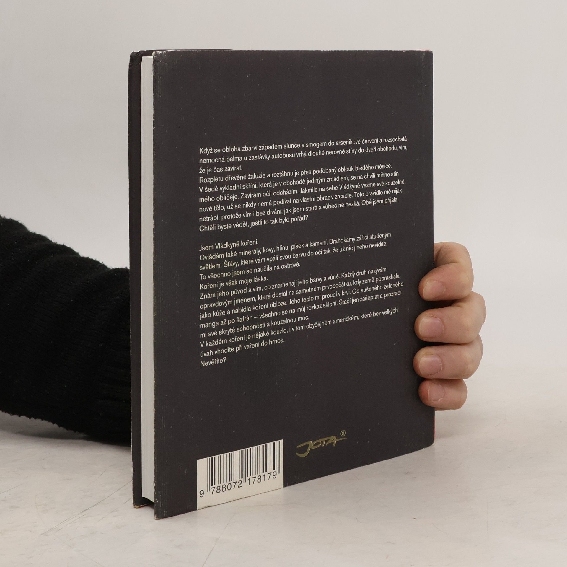Poetický román známé americké autorky indického původu. V malé indické vesnici v dávném bezčasí přichází za zvláštních okolností na svět nemilovaná dcera s věšteckým nadáním. Dívka nepřímo zaviní smrt vlastních rodičů a neštěstí obyvatel vesnice. Po letech strastí i dobrodružství se dostává na opuštěný ostrov, kde žije tajemná stará vědma se svými učednicemi. Zde se dívka stává vládkyní a zároveň nejponíženější služebnicí kouzelného koření, ochránkyní a utěšitelkou lidí. Po iniciaci ohněm získává děvče, nyní nesoucí jméno Tilo, novou podobu. Budí se jako stará žena, majitelka obchodu s kořením v současném San Francisku. Její obchod se stává místem, na které utíkají pro radu a pomoc lidé různých povah a odlišného společenského postavení z řad indických imigrantů: týraná manželka, taxikář hledající lásku, zoufalý dědeček vnučky, která se snaží vymknout ze sevření přísných pravidel tradiční indické rodiny. Podaří se Tilo, hledající nejlepší koření pro klid duší ostatních, nalézt vlastní klid prostřednictvím dobré magie? Nebo se po setkání s tajemným Američanem, který ohrozí její vyrovnanost i kouzelné schopnosti, rozhodne nedodržet slib, kterým se zavázala, a spustí lavinu neblahých událostí?