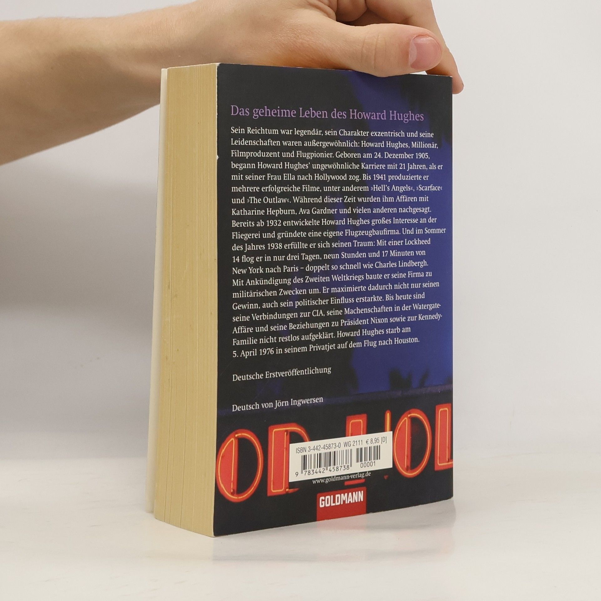 Seine Karriere begann im Hollywood der 30er Jahre. Dort produzierte Howard Hughes Filme wie „Hell´s Angels“, „Scarface“ und „Outlaw“ ebenso erfolgreich wie Gesprächsstoff: durch seine Beziehungen zu Bette Davis, Katharine Hepburn und Ava Gardner. Zu diesen Leidenschaften kam eine weitere hinzu: das Fliegen. Hughes baute eine Flugzeugfirma auf und verwirklichte 1938 seinen Traum vom Fliegen auf sensationelle Weise: Mit einer Lockhead 14 überwand er die Strecke von New York nach Paris in nur drei Tagen, neun Stunden, 17 Minuten – doppelt so schnell wie Charles Lindbergh. Als der Zweite Weltkrieg begann, baute Hughes seine Firma für militärische Zwecke aus und steigerte damit seinen Einfluss auf die amerikanische Politik. Wie groß dieser Einfluss war – auf die CIA oder die Watergate-Affäre, auf Präsident Nixon oder die Kennedys – ist bis heute nicht restlos aufgeklärt. Charles Higham entwirft in seiner Biographie das faszinierende Bild eines außergewöhnlichen Mannes.