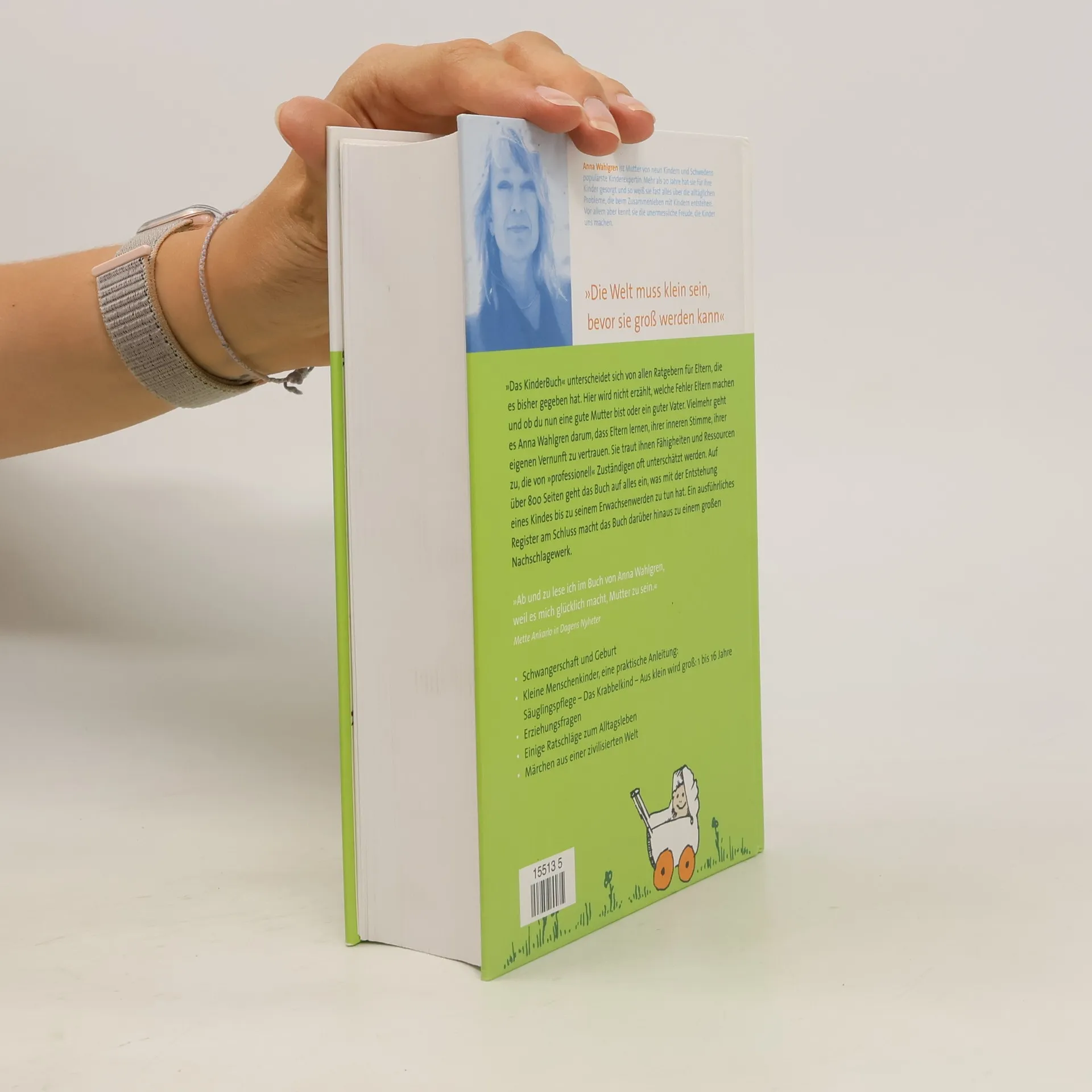 Das Buch von Anna Wahlgren beruht auf dem Erfahrungsschatz einer Mutter, die neun Kinder ins Leben begleitet hat. Ihr Durchblick, ihre Einsicht und tief empfundene Liebe den Kindern gegenüber macht aus dem „KinderBuch“ ein Buch, das seine Leser über Jahre hinweg begleiten wird, das sie persönlich anspricht und ihnen Mut macht. „Hätte ich das Buch doch nur schon bei meinem ersten Kind gehabt“ lautet der Tenor vieler Briefe, die den Verlag und Anna Wahlgren erreicht haben. „Das KinderBuch“ unterscheidet sich von allen Elternratgebern, die es bisher gegeben hat. Hier wird nicht erzählt, welche Fehler Eltern machen und ob du eine gute Mutter oder ein guter Vater bist. Vielmehr geht es Anna Wahlgren darum, dass Eltern ihrer inneren Stimme, ihrer eigenen Vernunft vertrauen. Sie traut den Eltern jene Fähigkeiten und Ressourcen zu, die von der Gesellschaft und den professionell „Zuständigen“ oft unterschätzt werden. Auf über 800 Seiten geht das Buch auf alles ein, was mit der Entstehung eines Kindes bis zu seinem Erwachsenwerden zu tun hat. Ein ausführliches Register am Schluss macht das Buch darüber hinaus zu einem großen Nachschlagewerk, das sämtliche Alltagsprobleme im Umgang mit Kindern aufführt.