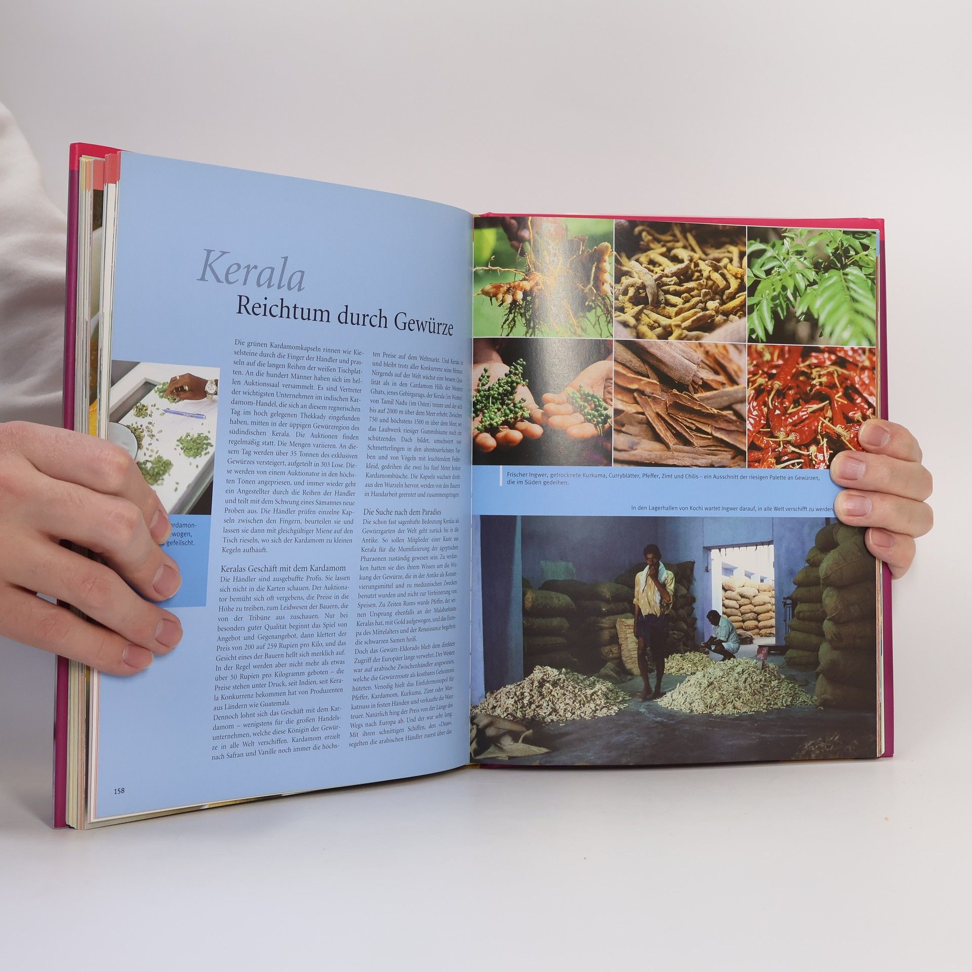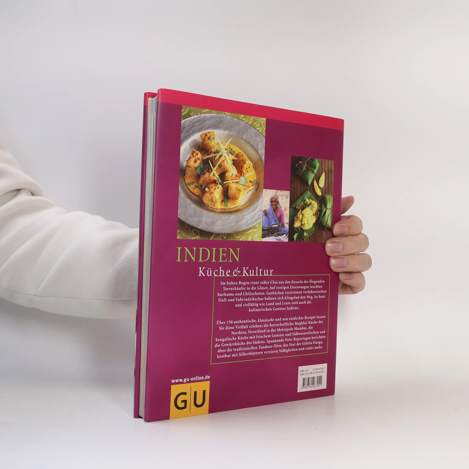 Landschaftliche Gegensätze, eine große Vielfalt der Glaubensrichtungen, eine wechselhafte Kolonialgeschichte und große soziale Unterschiede bringen in Indien eine in der Welt wohl einzigartige Buntheit der Alltagskultur mit sich. Entsprechend vielfältig ist auch die Küche - eine unvergleichliche Palette an Produkten, Aromen und Zubereitungsarten. Die Rezepte reichen von den nordindischen Fleisch-, Tandoori- und Moghul-Gerichten, über vegetarische Talis und Streetfood der westlichen, Fischspezialitäten und Süßigkeiten der östlichen Landesteile bis zur raffiniert-scharfen Gewürzküche des Südens. Spannende Bild-Reportagen berichten über die teuflisch heißen Tandoor-Öfen, über die einfache und doch raffinierte Küche der ehemaligen Kriegerfürsten in Rajastan, die mit kostbaren Silberblatt verzierten Süßigkeiten und die unendliche Vielfalt der Gewürze.