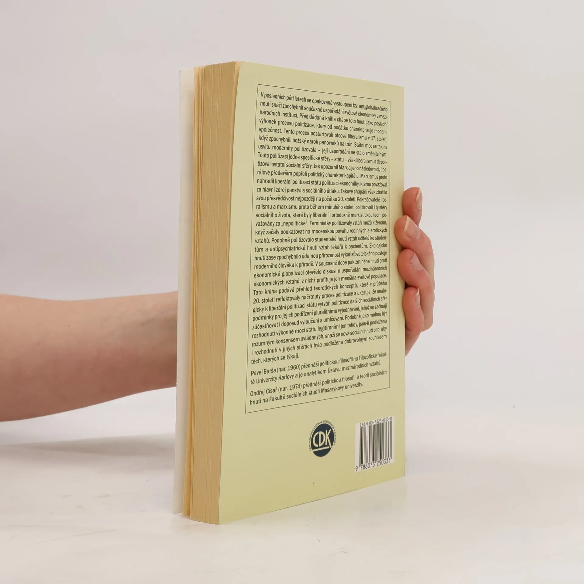 V posledních pěti letech se antiglobalizační hnutí snaží zpochybnit současné uspořádání světové ekonomiky a mezinárodních institucí. Tato kniha chápe hnutí jako poslední výhonek procesu politizace, který od počátku charakterizuje moderní společnost. Tento proces začal v 17. století, kdy otcové liberalismu zpochybnili božský nárok panovníků na trůn, čímž se státní moc stala změnitelnou. Liberalismus depolitizoval ostatní sociální sféry, což Marx a jeho následovníci kritizovali, když upozornili na politický charakter kapitálu. Marxismus se pokusil politizovat ekonomiku jako hlavní zdroj panství a útlaku, avšak toto chápání ztratilo přesvědčivost na počátku 20. století. V průběhu minulého století politizovali jak liberálové, tak marxisté i sféry, které byly dříve považovány za „nepolitické“. Feministky, studentské hnutí a ekologické hnutí začaly zpochybňovat mocenské vztahy v různých oblastech. Hnutí proti ekonomické globalizaci nyní otevírá diskusi o uspořádání mezinárodních ekonomických vztahů, z nichž profituje jen menšina populace. Kniha přehledně reflektuje teoretické koncepty politizace a ukazuje, jak politizace různých sociálních sfér vytváří podmínky pro pluralitní vyjednávání, do kterého se zapojují i dříve vyloučení. Nová sociální hnutí usilují o to, aby rozhodnutí v těchto sférách byla podložena dobrovolným souhlasem těch, kterých se týkají.