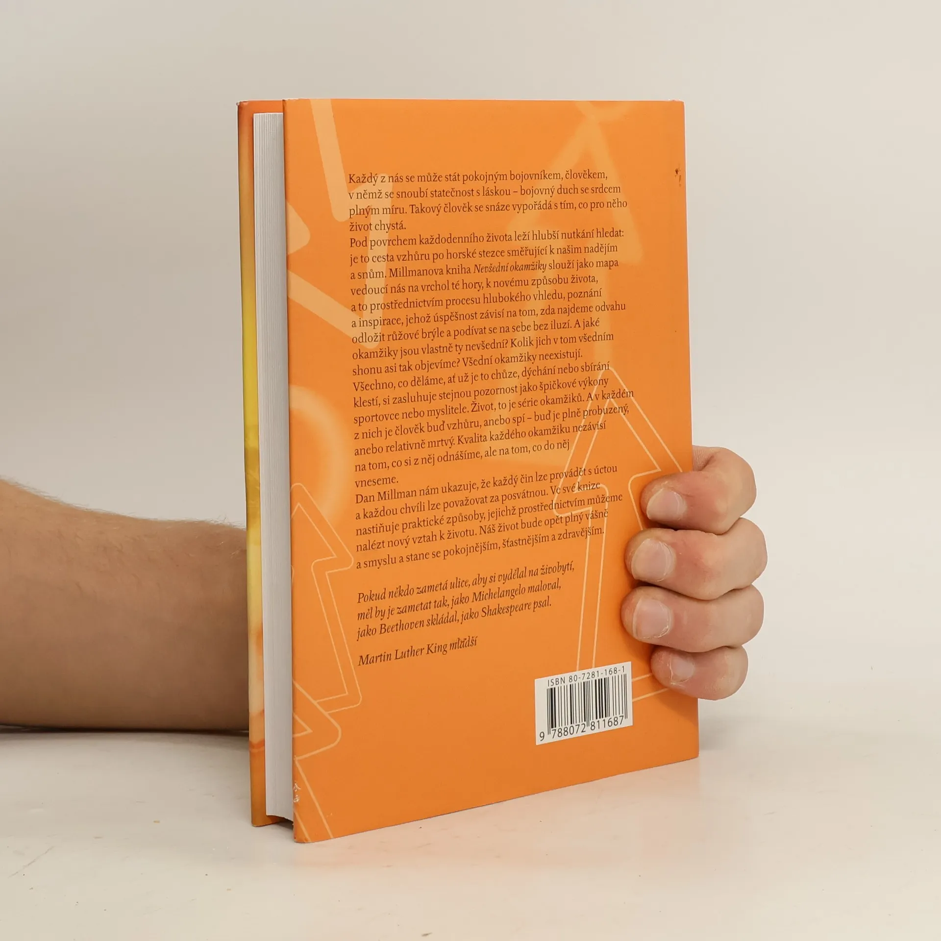 Každý z nás se může stát pokojným bojovníkem, člověkem, v němž se snoubí statečnost s láskou, bojovný duch se srdcem plným míru. Potom se snáze vypořádá s tím, co pro něho život chystá. Millmanova kniha Nevšední okamžiky slouží jako průvodce vedoucí k novému způsobu života prostřednictvím procesu hlubokého vhledu, poznání a inspirace. Úspěšnost závisí na tom, zda najdeme odvahu odložit růžové brýle a podívat se na sebe bez iluzí. Všední okamžiky neexistují. Všechno, co děláme - ať už je to chůze, dýchání nebo sbírání klestí - si zasluhuje stejnou pozornost jako špičkové výkony sportovce nebo myslitele. Život, to je série okamžiků. A v každém z nich je člověk buď vzhůru, anebo spí buď je plně probuzený, anebo relativně mrtvý. Kvalita každého okamžiku totiž nezávisí na tom, co si z něj odnášíme, ale na tom, co do něj vneseme.