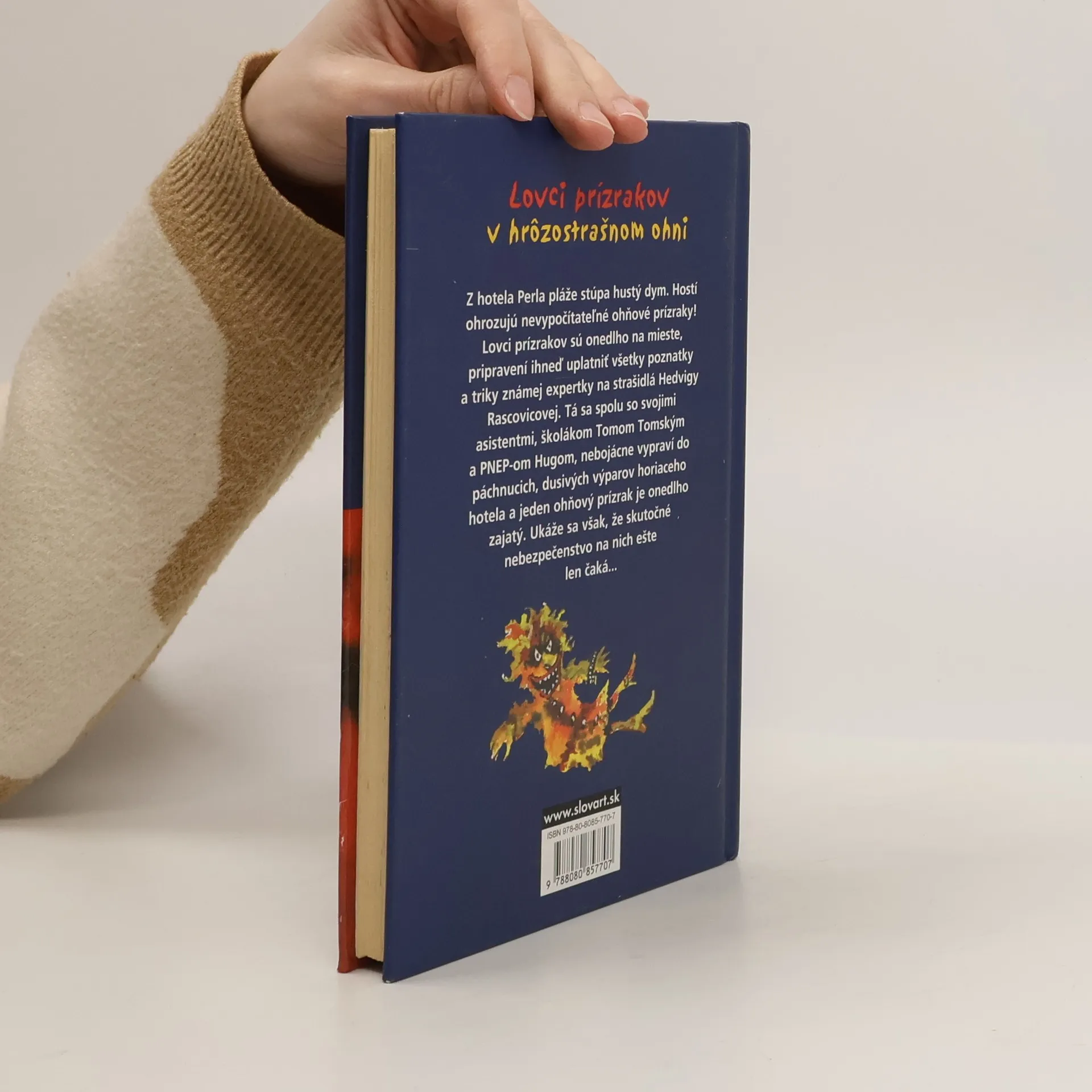 Z hotela „Perla pláže“ stúpa hustý dym. Hostí ohrozujú nevypočítateľné ohňové prízraky! Lovci prízrakov sú však onedlho na mieste, pripravení ihneť uplatniť všetky poznatky a triky známej expertky na strašidlá Hedvigy Rascovicovej. Tá sa spolu so svojimi asistentmi, školákom Tomom Tomských a PNEP-om Hugom, nebojácne vypraví do páchnucich, dusivých výparov, a malý ohňový prízrak je onedlho zajatý. Ukáže sa však, že tá skutočne nebezpečná úloha na nich ešte len čaká.