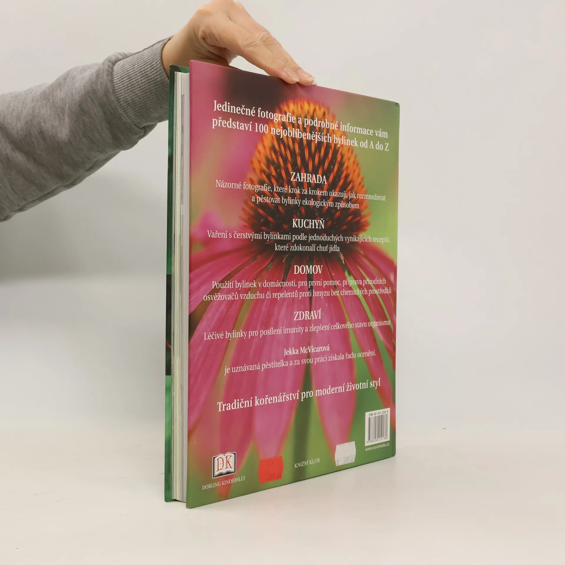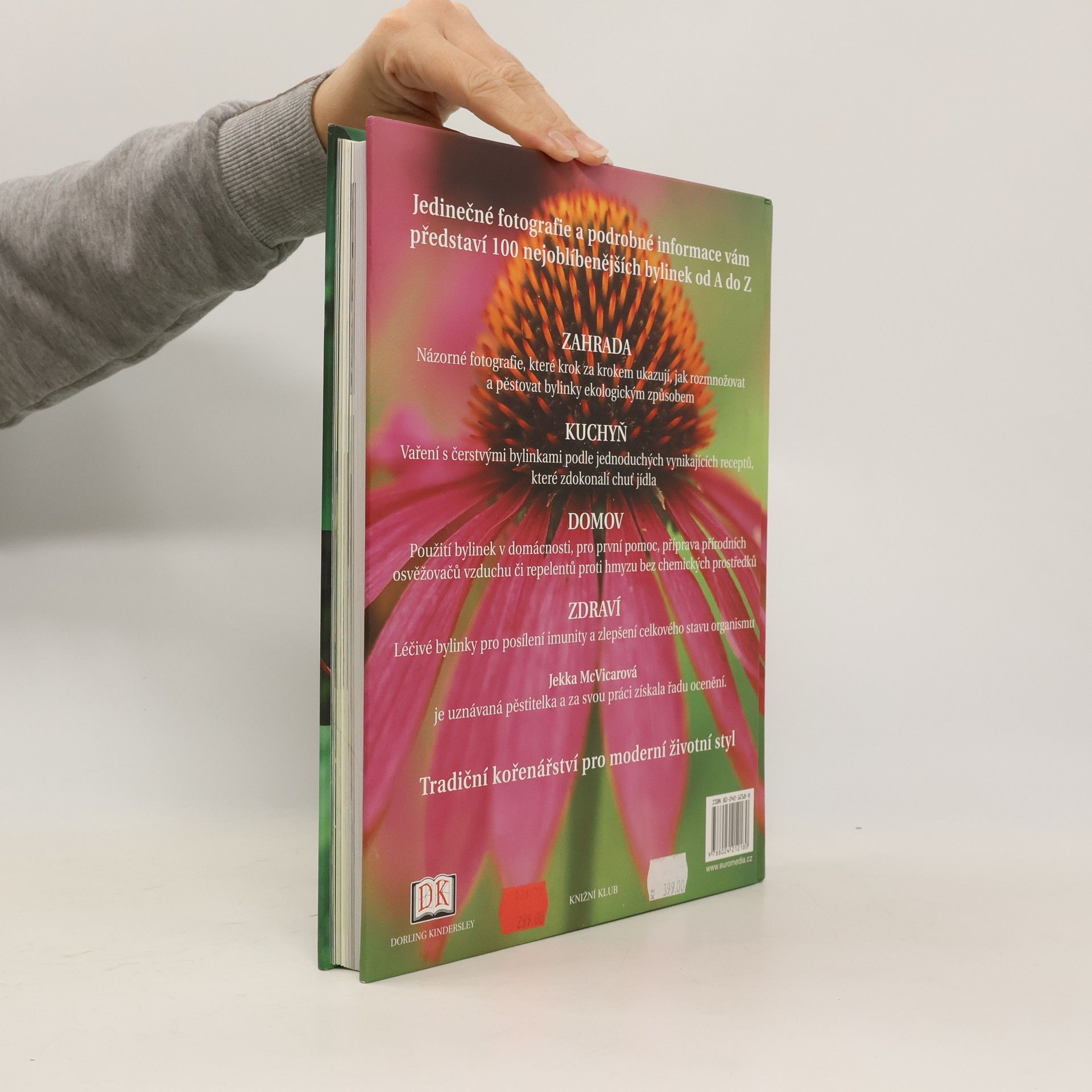 Autorka oživuje tradici kořenářství a vysvětluje, jak využít čerstvé bylinky doma, pro zdraví i v zahradě. Kniha obsahuje sto nejoblíbenějších bylinek seřazených podle latinských názvů od A do Z. Jsou doplněny názornými fotografiemi, které ukazují, jak rostliny pěstovat ekologickým způsobem a jak vařit čerstvé byliny podle jednoduchých receptů, které vylepší chuť jídla a posílí zdraví. Publikace rovněž poskytuje vynikající tipy jak bez chemických prostředků připravit přírodní osvěžovače vzduchu i repelenty proti hmyzu. Jedinečné fotografie a podrobné informace vám představí 100 nejoblíbenějších bylinek od A do Z Zahrada Názorné fotografie, které krok za krokem ukazují, jak rozmnožovat a pěstovat bylinky ekologickým způsobem Kuchyň Vaření s čerstvými bylinkami podle jednoduchých vynikajících receptů, které zdokonalí chuť jídla Domov Použití bylinek v domácnosti, pro první pomoc, příprava přírodních osvěžovačů vzduchu či repelentů proti hmyzu bez chemických prostředků Zdraví Léčivé bylinky pro posílení imunity a zlepšení celkového stavu organismu