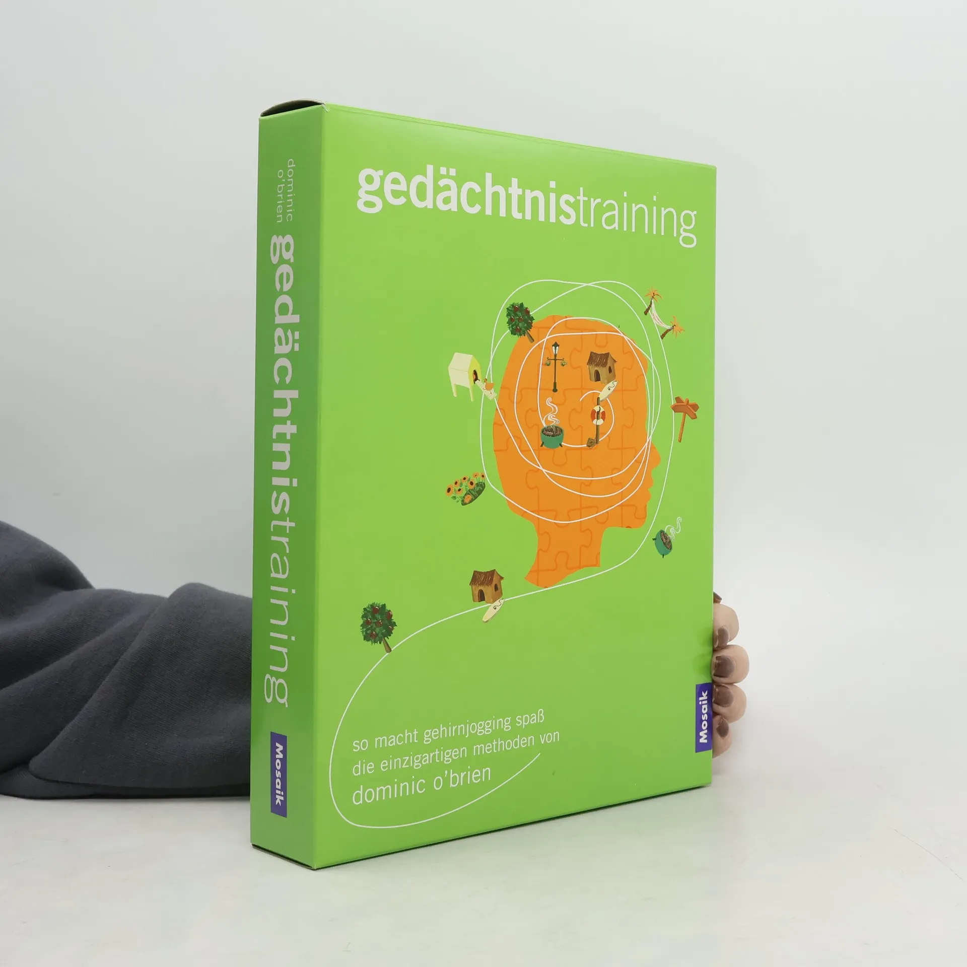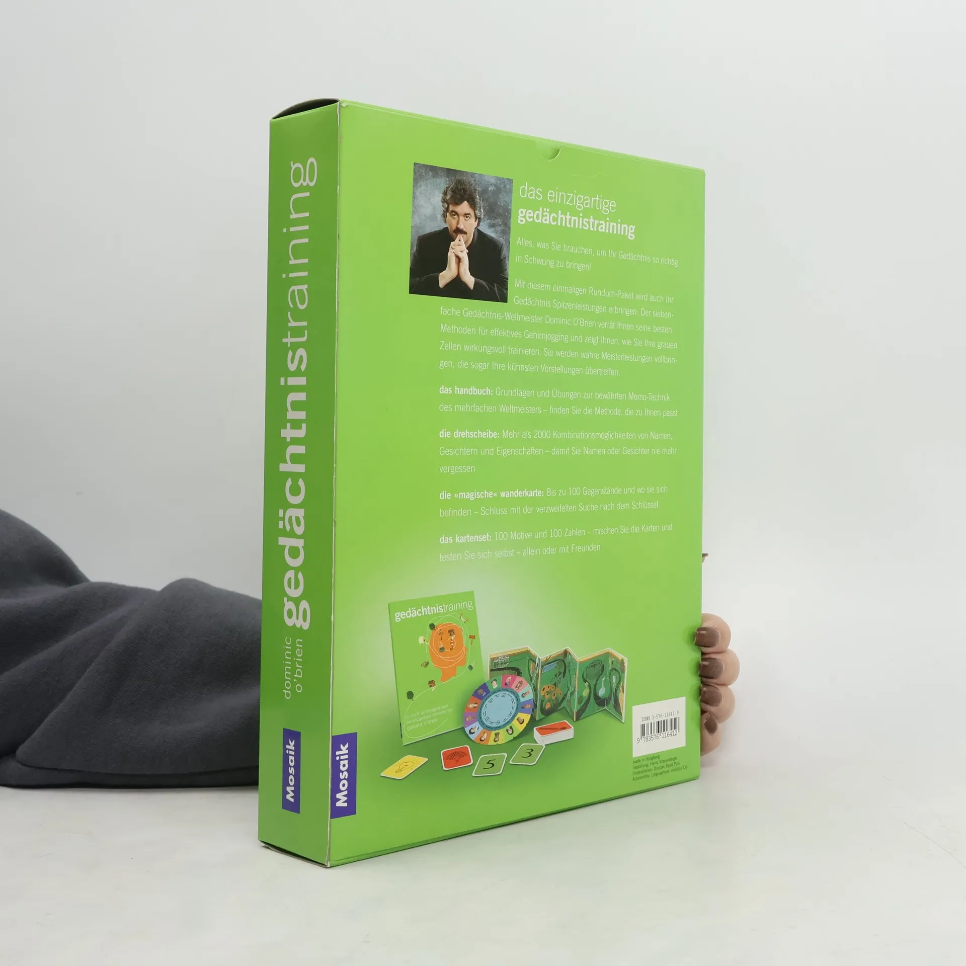 Bei TASCHENs Gedächtnistraining handelt es sich um ein Fitness-Studio voller Geräte, die nur dazu dienen den menschlichen Geist und das Gedächtnis zu trainieren. Dominic O'Brien, siebenmaliger World Memory Champion, gibt dazu hilfreiche Tipps und sagt wie es geht. Die Box beinhaltet die komplette Ausrüstung, um das Gehirn auf Trab zu bringen und mal so richtig anzukurbeln. Ihr persönlicher Trainer Dominic erklärt Ihnen in aller Ruhe zunächst die Geräte und weiht Sie dann in die Geheimnisse des Gedächtnis-Stretching ein. Ihr Heim-Trainingscenter umfasst: ein Buch voller Techniken vom Altertum bis in unsere Zeit mit zahlreichen Darstellungen, Tipps und Trick / ein außergewöhnliches Leporello, das Ihnen ermöglicht Dominics Methode in die Tat umzusetzen / Eine visuelle Hilfe bestehend aus 4 imaginären Reisen, jede mit 25 Merkhilfen für das Gedächtnis / 100 Gedächtniskarten mit einer Abbildung auf der einen und einer Zahl von 0-99 auf der anderen Seite / Das Party Wheel - Drehen Sie das Rad mit 13 Gesichtern, 13 Namen und 13 Attributen und Sie erhalten durch die verschiedenen Kombinationen mehr als 2.000 Partygäste
