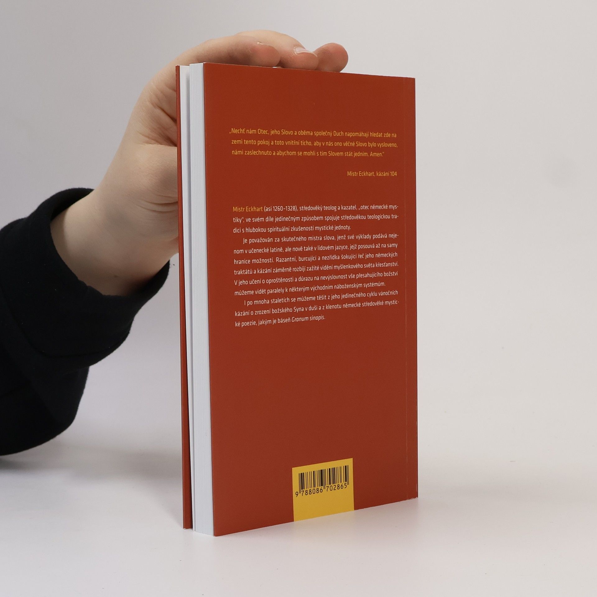 Kniha se věnuje tématu oproštění u Mistra Eckharta, středověkého teologa, a kazatele, „otce německé mystiky“, který ve svém díle jedinečným způsobem spojuje středověkou teologickou tradici s hlubokou spirituální zkušeností mystické jednoty. Knihu doplňuje překlad cyklu Eckhartových vánočních kázání o zrození božského Syna v duši a klenot německé středověké mystické poezie, jímž je báseň Granum sinapis. „Nechť nám Otec, jeho Slovo a oběma společný Duch napomáhají hledat zde na zemi tento pokoj a toto vnitřní ticho, aby v nás ono věčné Slovo bylo vysloveno, námi zaslechnuto a abychom se mohli s tím Slovem stát jedním. Amen.“ (Mistr Eckhart, kázání 104)