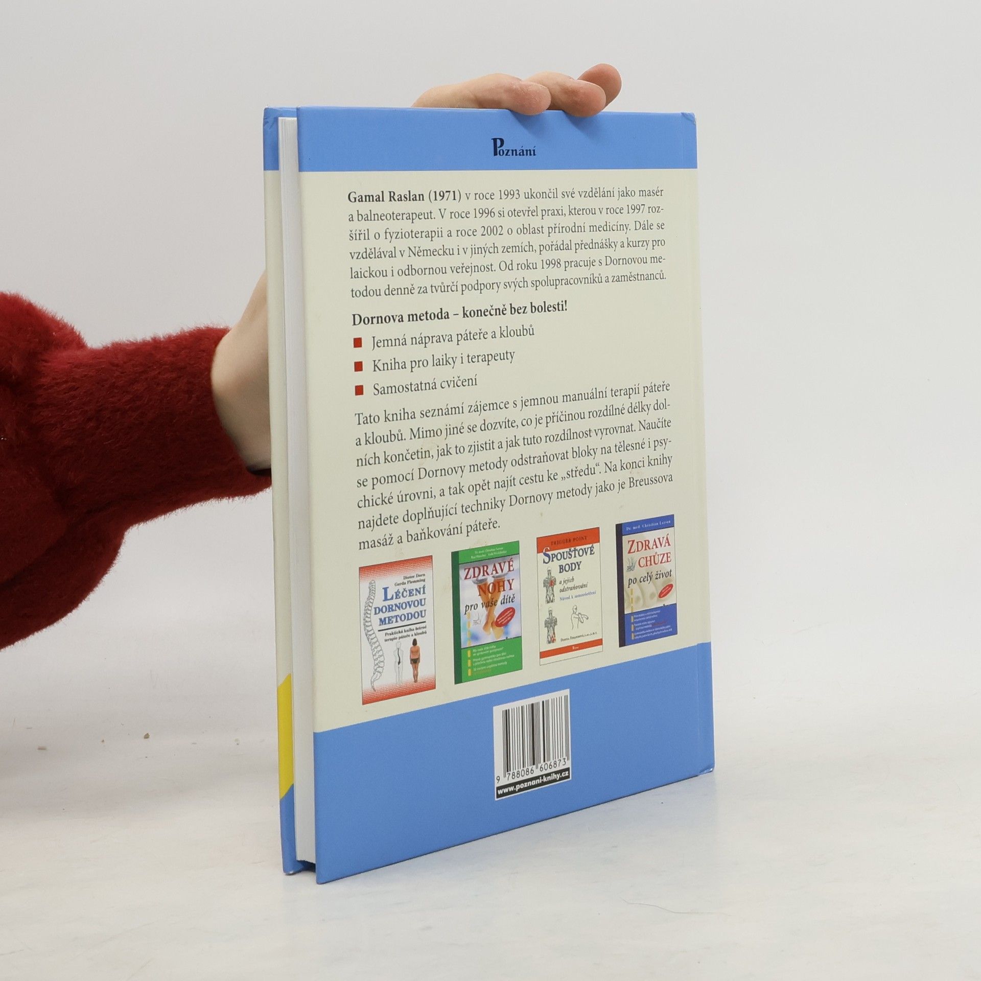 Tato kniha seznámí zájemce s jemnou manuální terapií páteře a kloubů. Mimo jiné se dozvíte, co je příčinou rozdílné délky dolních končetin, jak to zjistit a jak tuto rozdílnost vyrovnat. Naučíte se pomocí Dornovy metody odstraňovat bloky na tělesné i psychické úrovni, a tak opět najít cestu ke "středu". Na konci knihy najdete doplňující techniky Dornovy metody jako je Breussova masáž a baňkování páteře.
