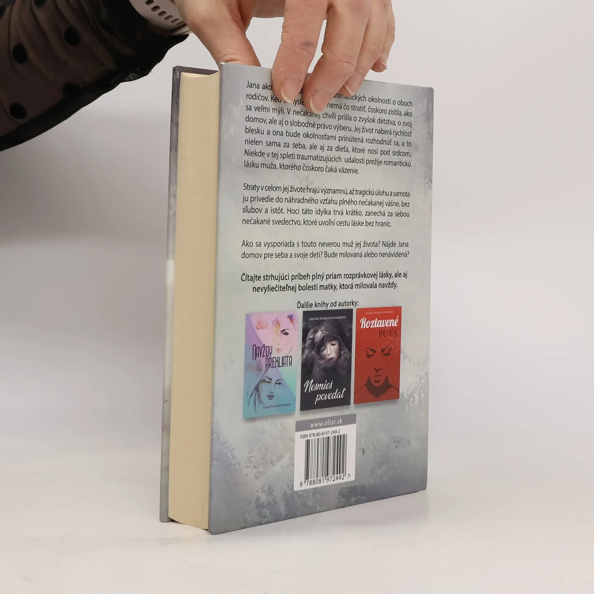 "Jana ako dieťa prišla za veľmi dramatických okolností o oboch rodičov. Keď si myslela, že už nemá čo stratiť, čoskoro zistila, ako sa veľmi mýli. V nečakanej chvíli prišla o zvyšok detstva,o svoj domov, ale aj o slobodné právo výberu. Jej život naberá rýchlosťou blesku a ona bude okolnosťami prinútená rozhodnúť sa,a to nielen sama za seba, ale aj za dieťa, ktoré nosí pod srdcom. Niekde v tej spleti nepríjemných udalostí prežije romantickú lásku muža, ktorého časom čaká väzenie. Straty v celom jej živote hrajú významnú, až tragickú úlohu a samotu ju privedie do náhradného vzťahu plného nečakanej vášne,bez sľubov a istôt. Hoci táto idylka trvá krátko, zanechá za sebou nečakané svedectvo, ktoré uvoľní cestu láske bez hraníc. Ako sa vysporiada s touto neverou muž jej života? Nájde Jana domov pre seba a svoje deti? Bude milovala alebo nenávidená? Čítajte strhujúci príbeh plný priam rozprávkovej lásky, ale aj nevyliečiteľnej bolesti matky, ktorá milovala navždy."
