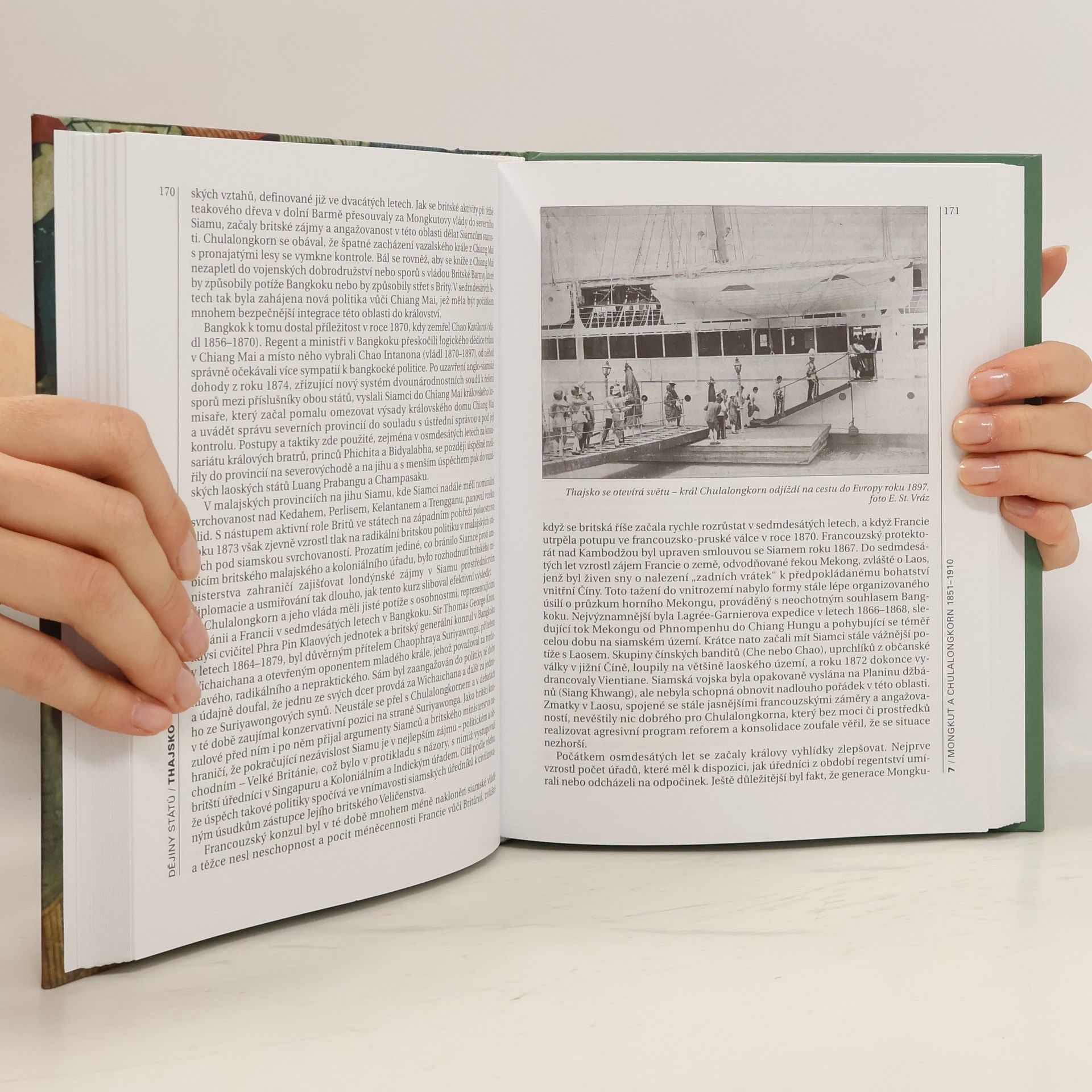Syntetické zpracování dějin Thajska sleduje proces formování etnika od nejstarších dob po moderní politické dějiny národa 20. a 21. stol. (do r. 2001). Autor se věnuje především politickým dějinám a dynastickým přehledům. Sleduje proces formování prvních správních celků (od 13. stol.), vznik velkých říší (království Ayutthaya, Lan Na, Lan Sang) a mocenské střety s okolními státy (Barma, Kambodža). Zhruba polovina textu je věnována přelomovému období od 19. stol., kdy dochází k prvním pokusům o modernizaci říše. Období po 2. světové válce charakterizuje posilování vlivu USA v celé východoasijské oblasti. Závěrečná kapitola obsahuje historický přehled česko-thajských vztahů. Chronologie, dynastické přehledy, rejstříky.