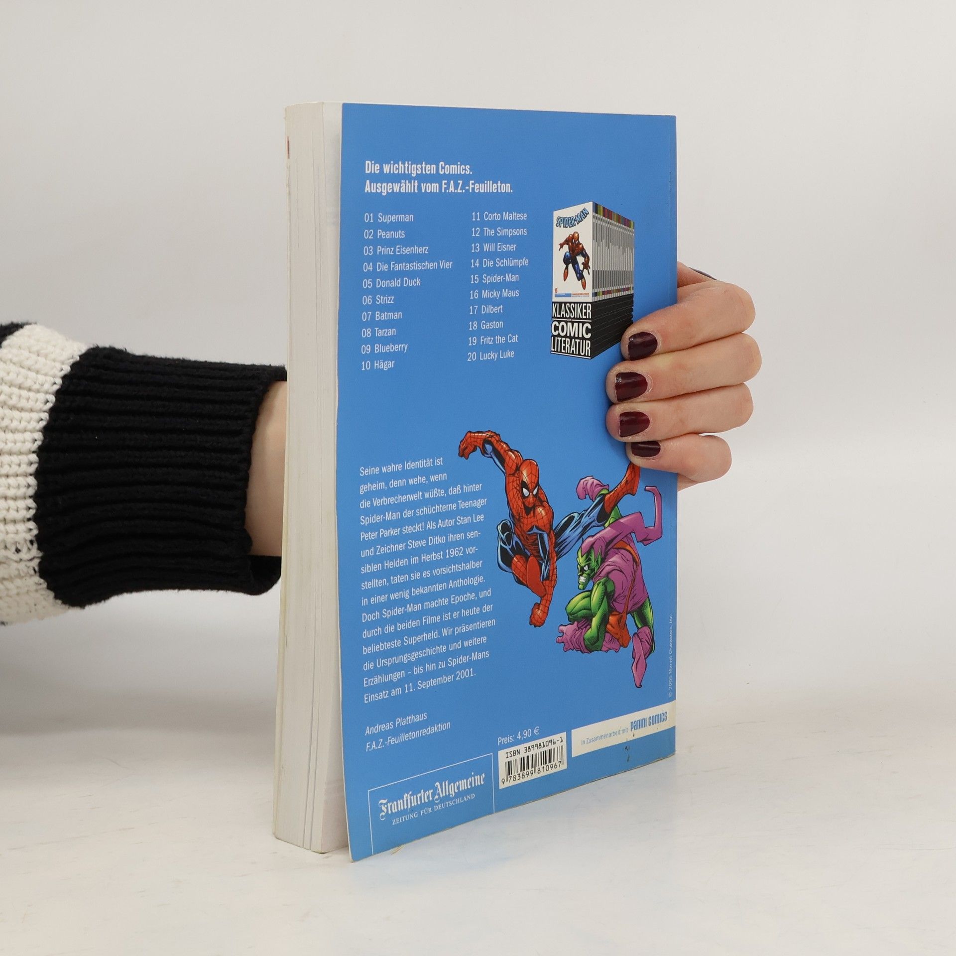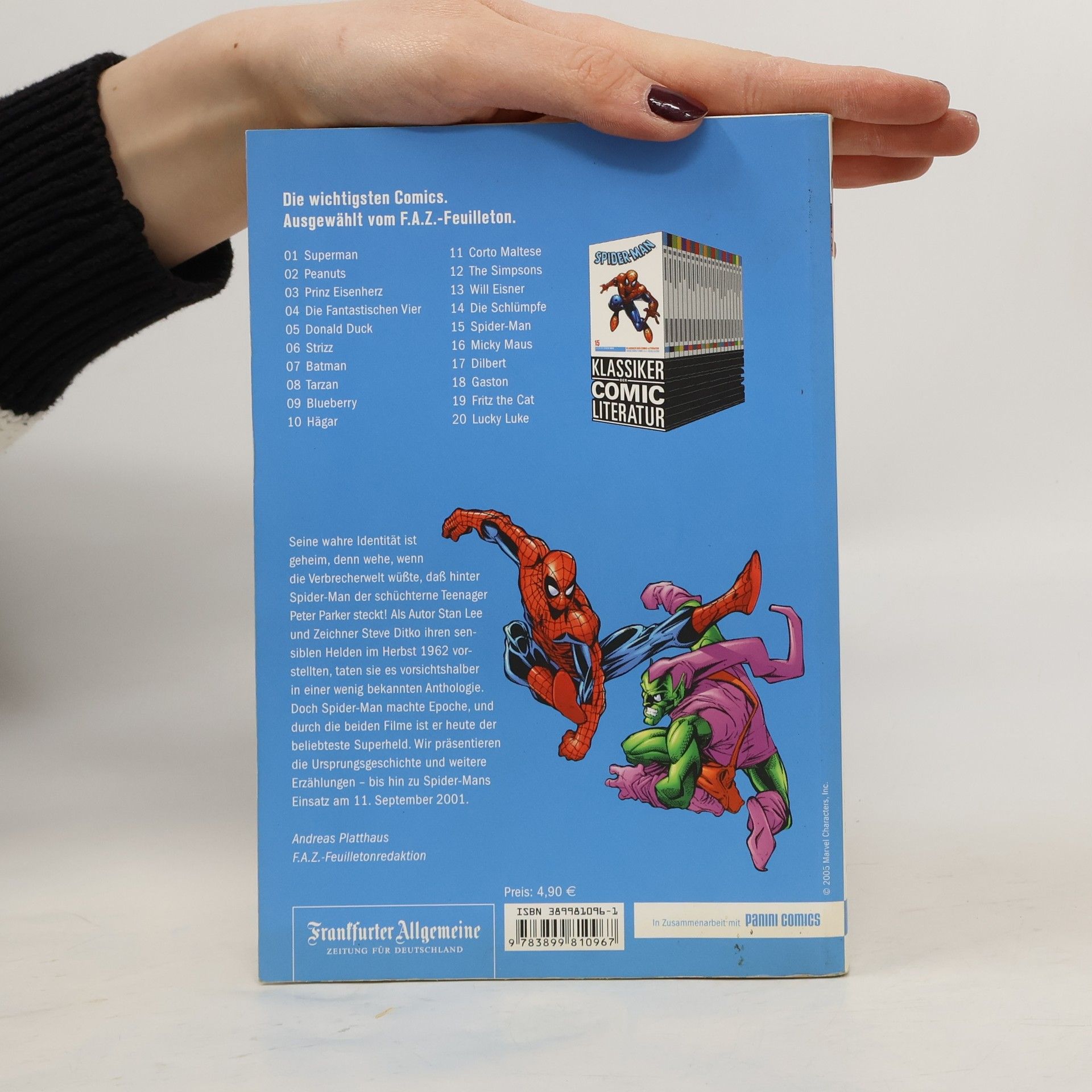 Seine wahre Identität ist geheim, denn wehe, wenn die Verbrecherwelt wüßte, daß hinter Spider-Man der schüchterne Teenager Peter Parker steckt. Als Autor Stan Lee und Zeichner Steve Ditko ihren sensiblen Helden 1963 vorstellten, taten sie es vorsichtshalber in einer abseitigen Anthologie. Doch Spider-Man machte Epoche, und durch die beiden Filme ist er heute der beliebteste Superheld. Wir präsentieren die Ursprungsgeschichte und weitere Erzählungen – bis hin zu Spider-Mans Einsatz am 11. September 2001.